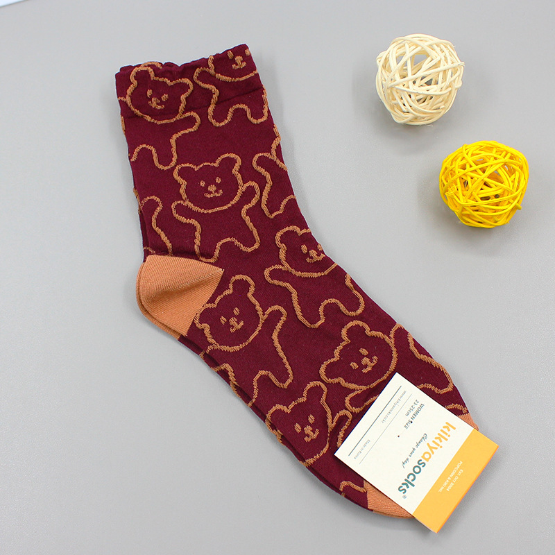 한국 양말 도매 동대문 2022 가을과 겨울 새로운 KIKI 낙서 전체 인쇄 곰 여자 양말의 한국어 버전