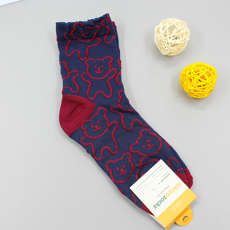 한국 양말 도매 동대문 2022 가을과 겨울 새로운 KIKI 낙서 전체 인쇄 곰 여자 양말의 한국어 버전스토어 가기