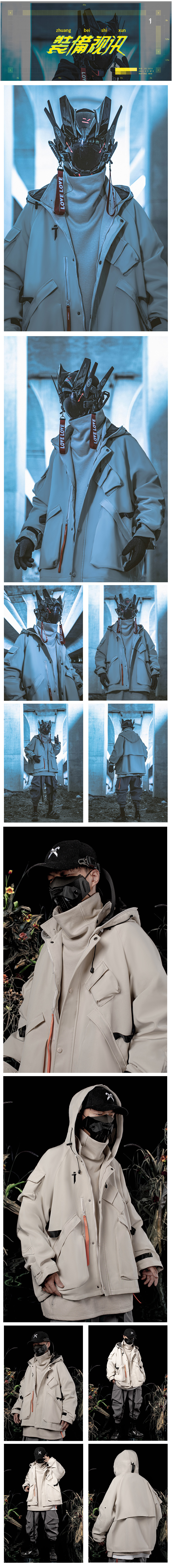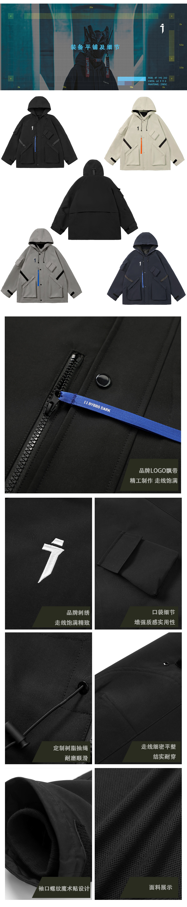 Jiye 중공업 오리지널 트렌디 브랜드 가을과 겨울 새로운 소형 칼라 후드 충전 의류 남성용 느슨한 캐주얼 재킷 코트