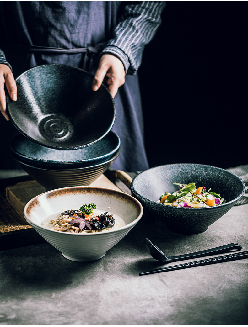 일본식 세라믹 그릇 가정용 대형 램 국수 그릇 밥그릇 국수 그릇 창조적 인 식기 세트 상업용 양동이 그릇