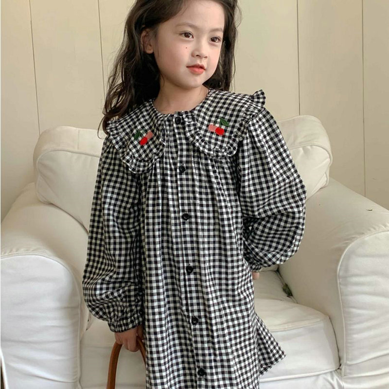 여아 스커트 큰 칼라 체리 격자 무늬 원피스 공주 스커트 23 봄과 가을 새로운 대외 무역 아동복스토어 가기