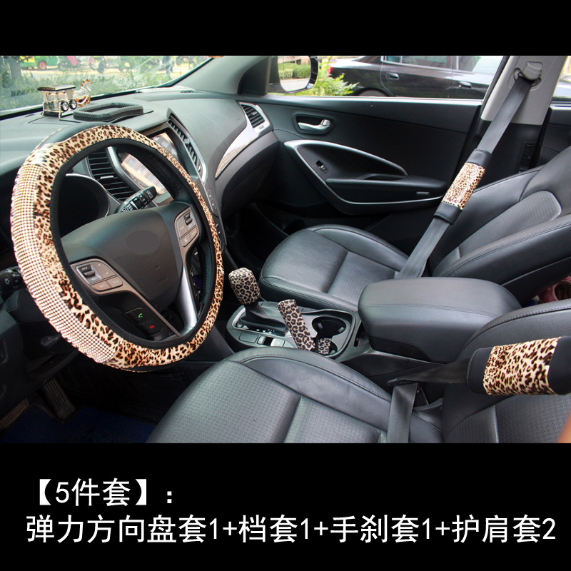 국경을 넘는 인기있는 자동차 스티어링 휠 커버 레오파드 프린트 다이아몬드 내장 패션 전체 다이아몬드 탄성 핸들 커버 세트 아마존스토어 가기