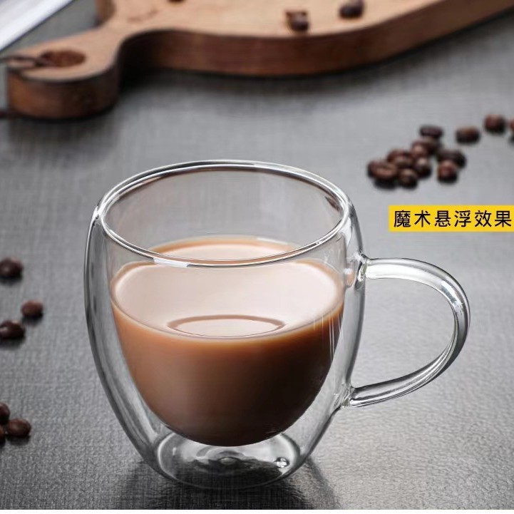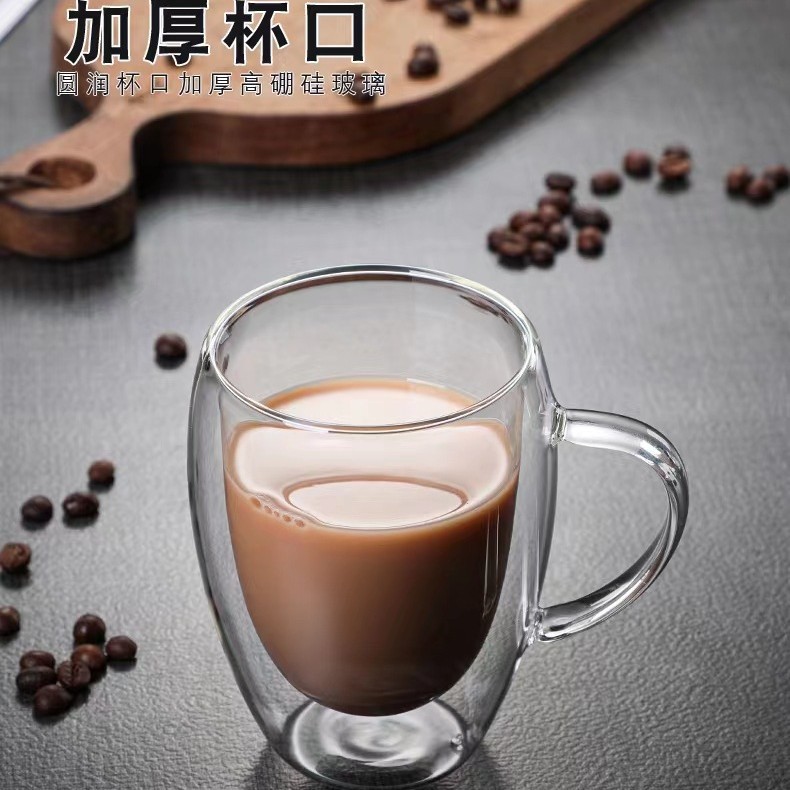 이중층 유리 투명 크리에이티브 워터 컵 단열 벨트 커피 컵 가정용 우유 컵 과일 주스 걸이 귀 커피 컵스토어 가기