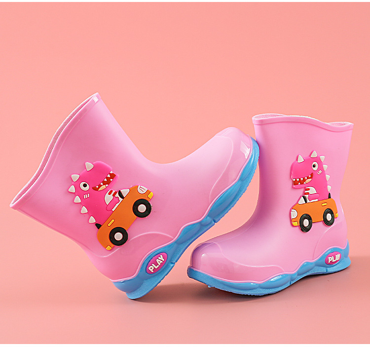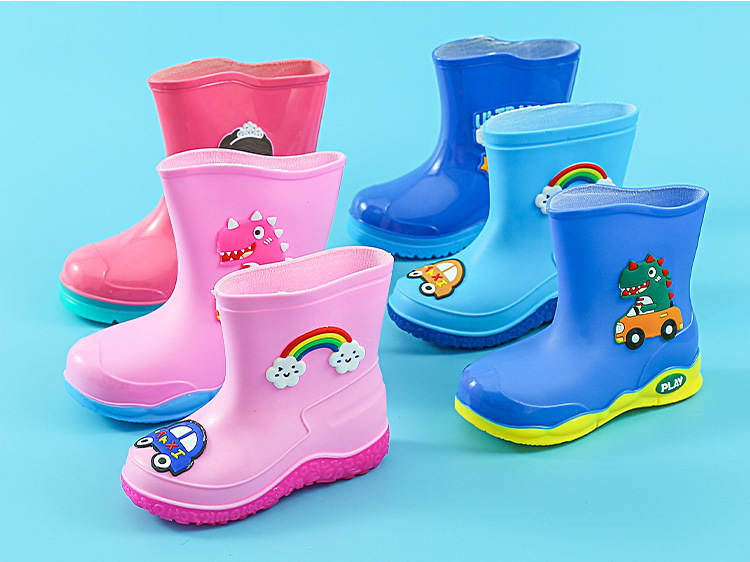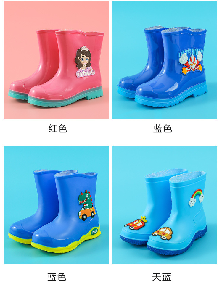 어린이 장화 소년 소녀 어린이 미끄럼 방지 장화 아기 물 신발 중간 및 큰 어린이 덧신 초등학생 만화 고무 신발스토어 가기