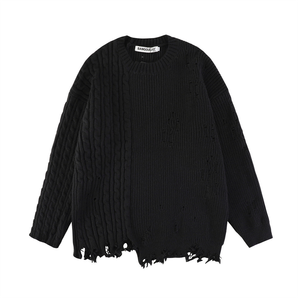 트위스트 니트 크로 셰 뜨개질 홀드 솔리드 컬러 풀오버 스웨터 남성용 트렌디 힙합 느슨한 디자인 니트 탑