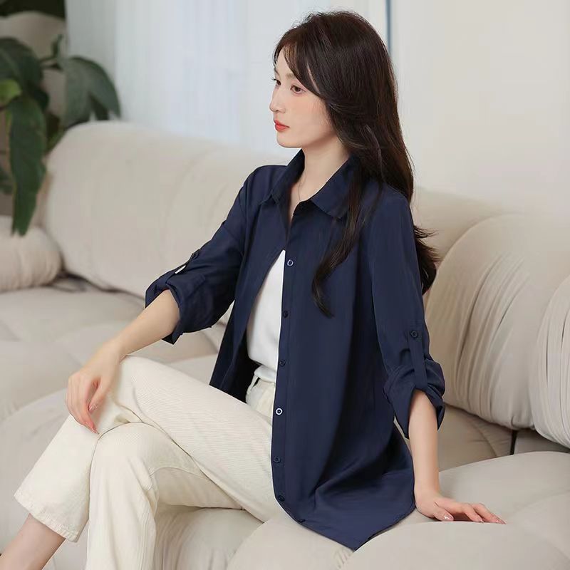 흰색 셔츠 여성 봄, 가을 새로운 긴팔 느슨한 한국 스타일 다목적 대형 여성 중간 길이 BF 기본 셔츠 인치 여성