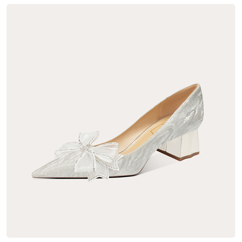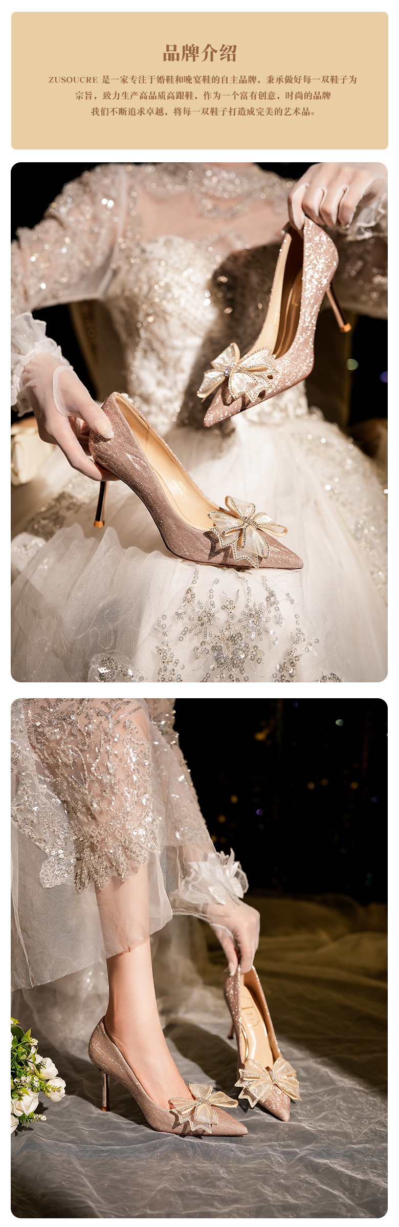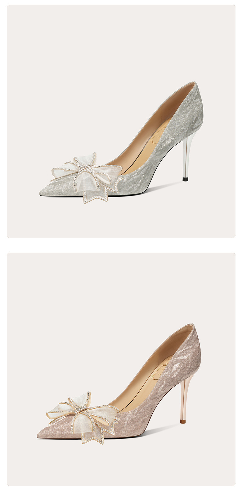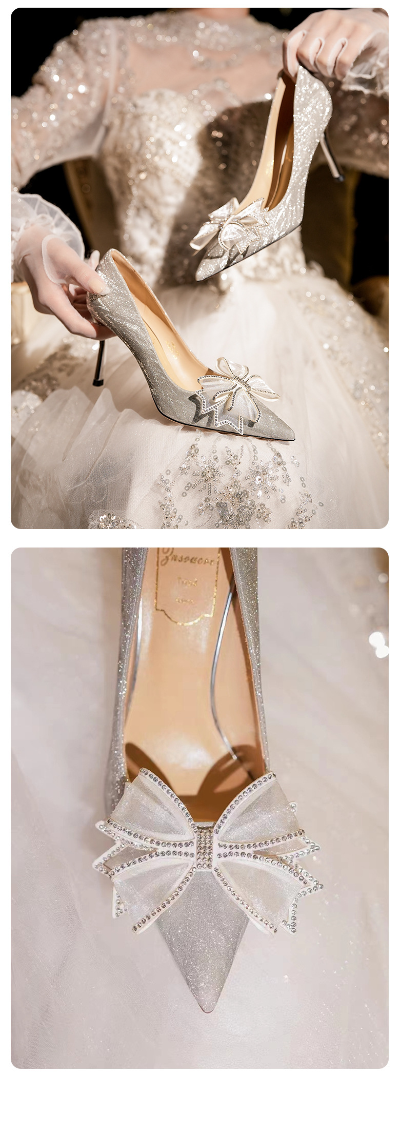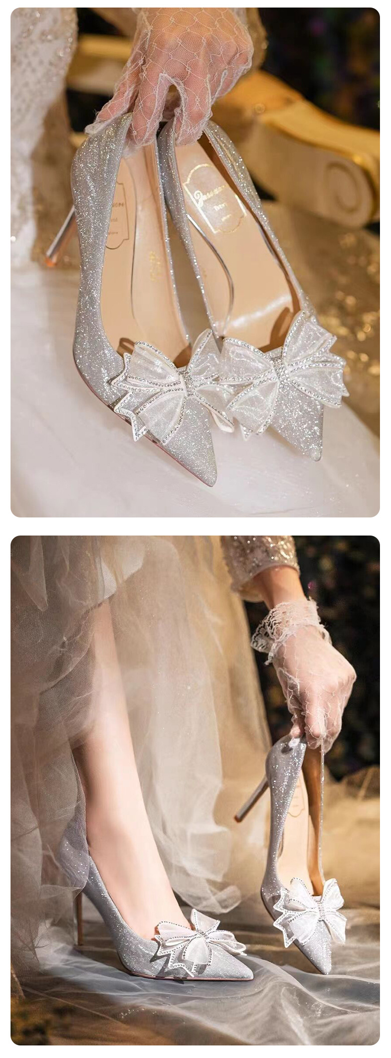 프랑스 하이힐 웨딩 신발 연회 신발 뾰족한 발가락 스틸레토 신부 신발 여성 신발 활 무릎 신발 양가죽 신발 여성