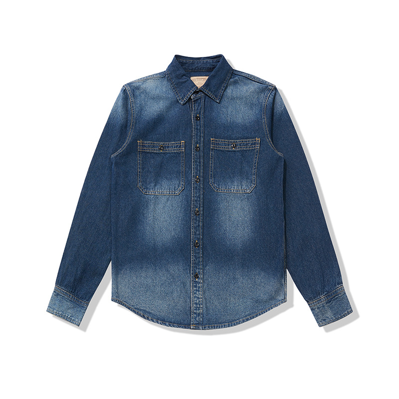 OKONKWO 아미 카지 미국 복고풍 무거운 워시 데님 셔츠 남자의 기본 색상 긴 소매 셔츠스토어 가기