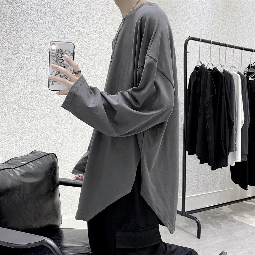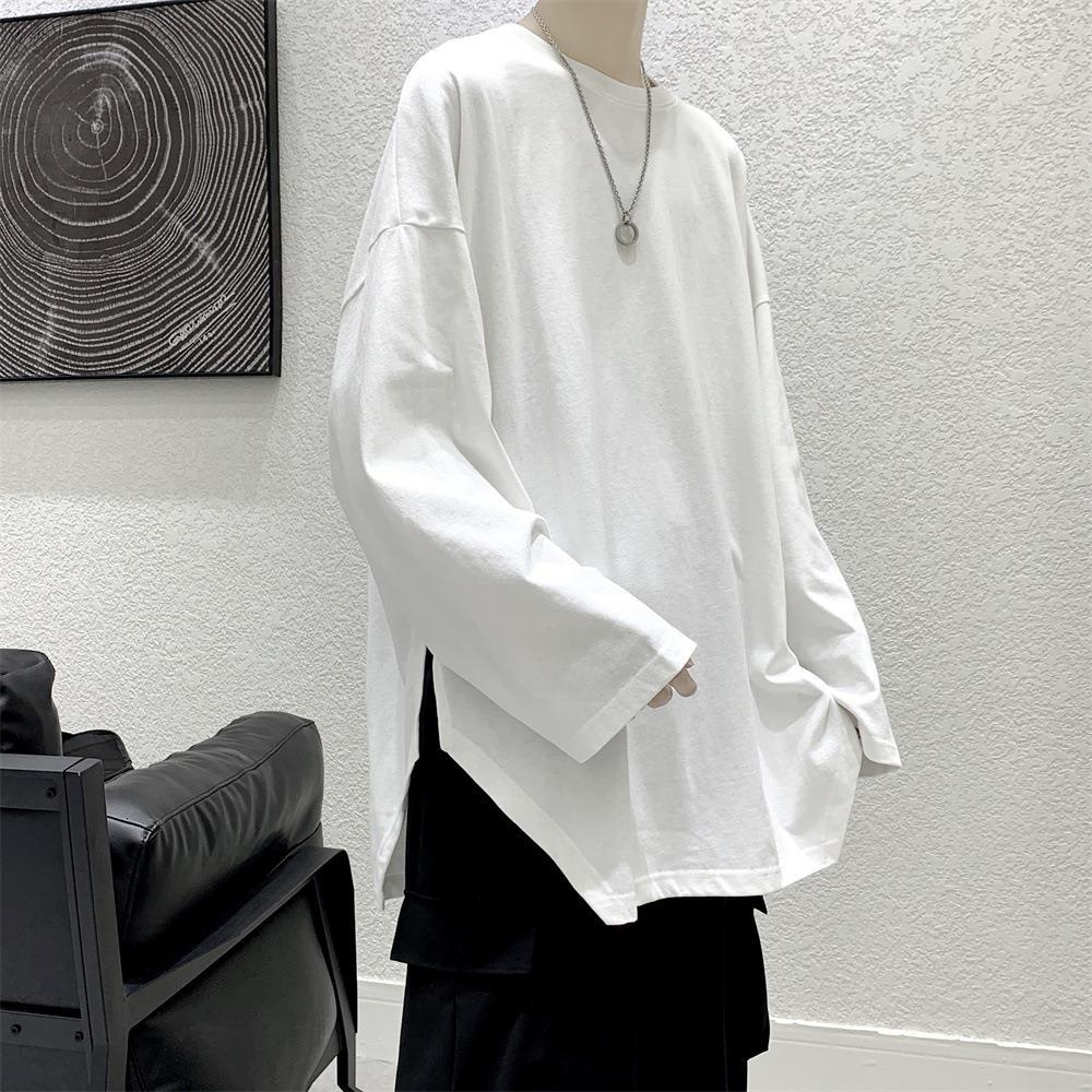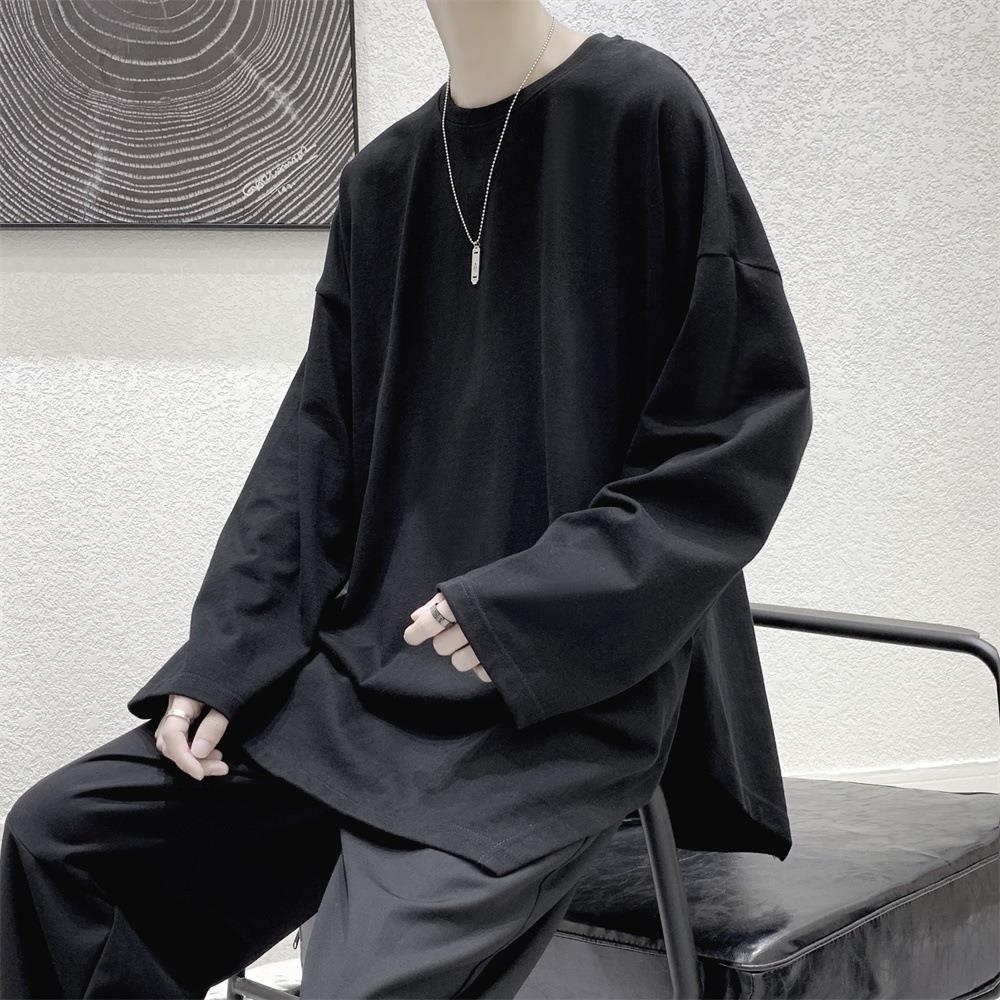 불규칙한 긴팔 티셔츠 남성용 트렌디 올 매치 솔리드 컬러 베이스 셔츠 홍콩 스타일 봄 가을 탑 루즈한 스웨터의 트렌디 브랜드스토어 가기