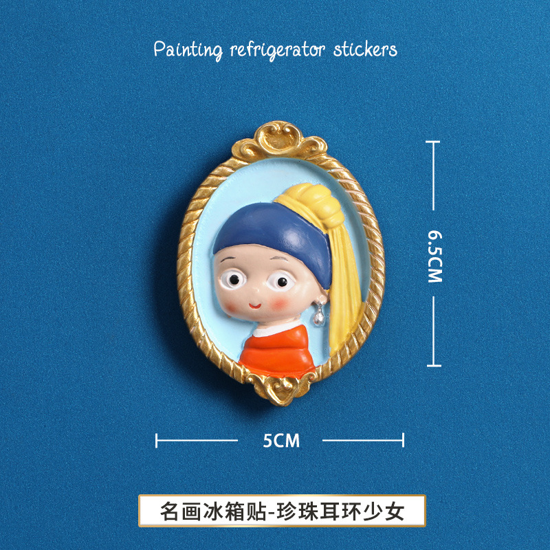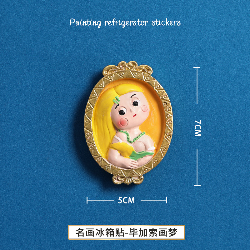 창조적 인 수지 냉장고 스티커 마그네틱 패치 3d 세계 유명한 그림 사진 프레임 명나라 캐릭터 냉장고 장식 예술 마그네틱 스티커