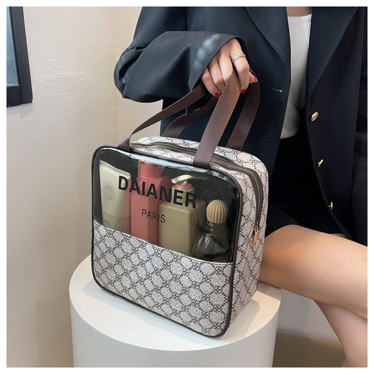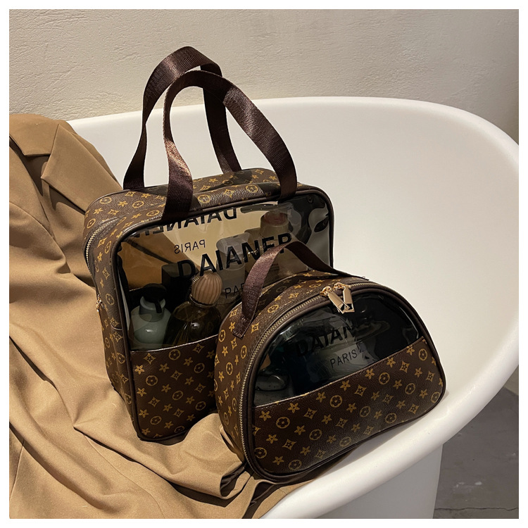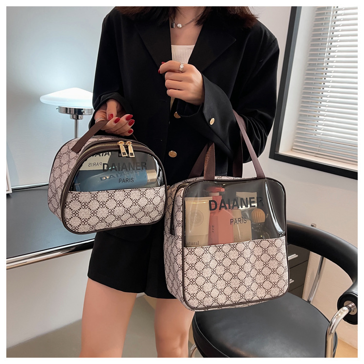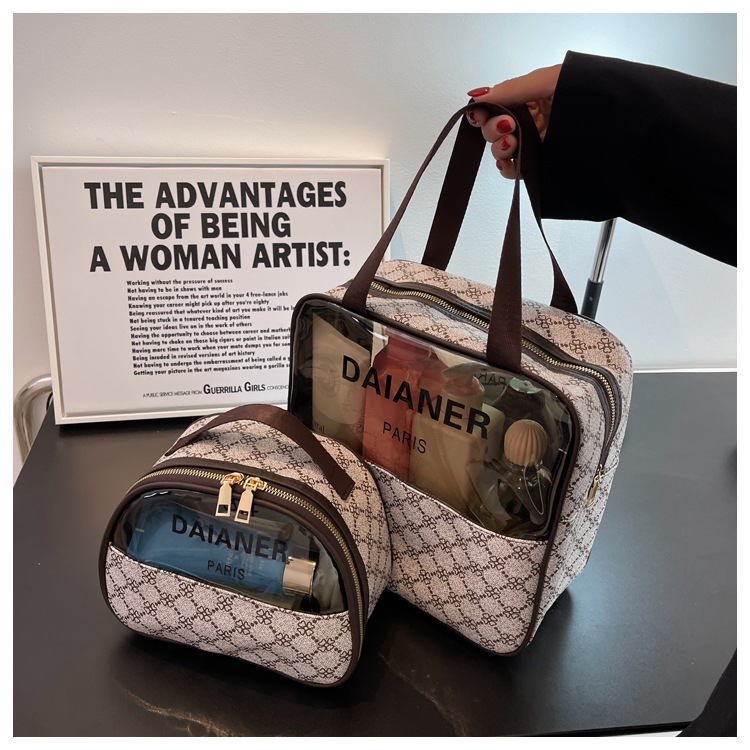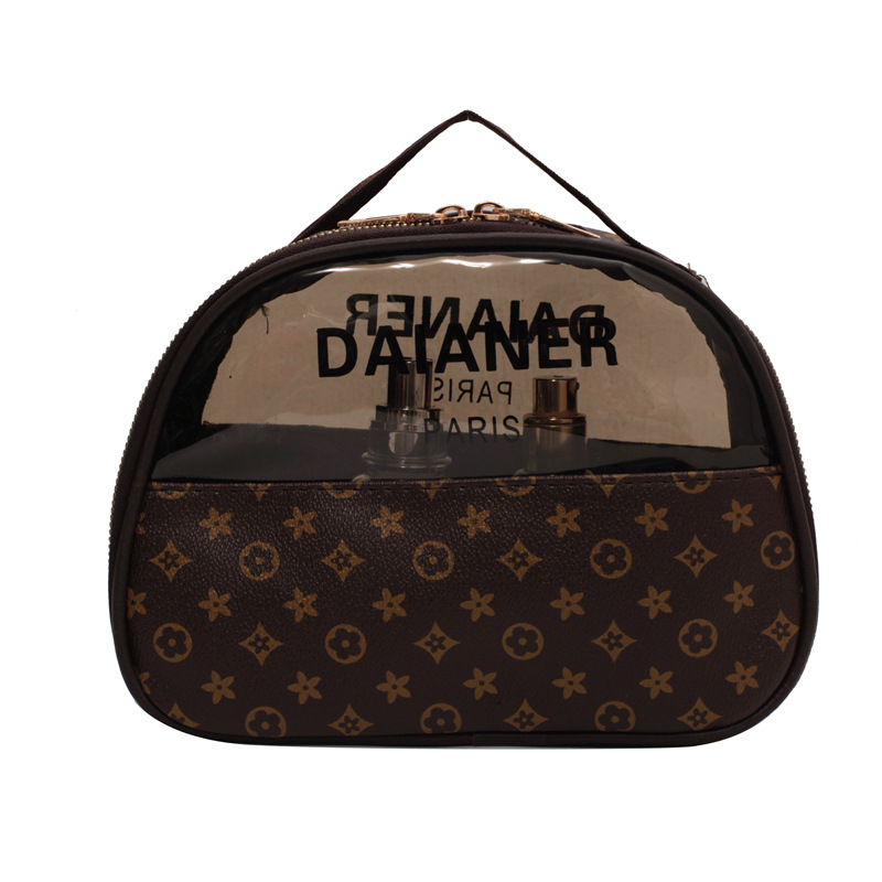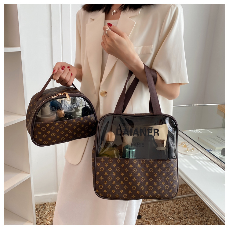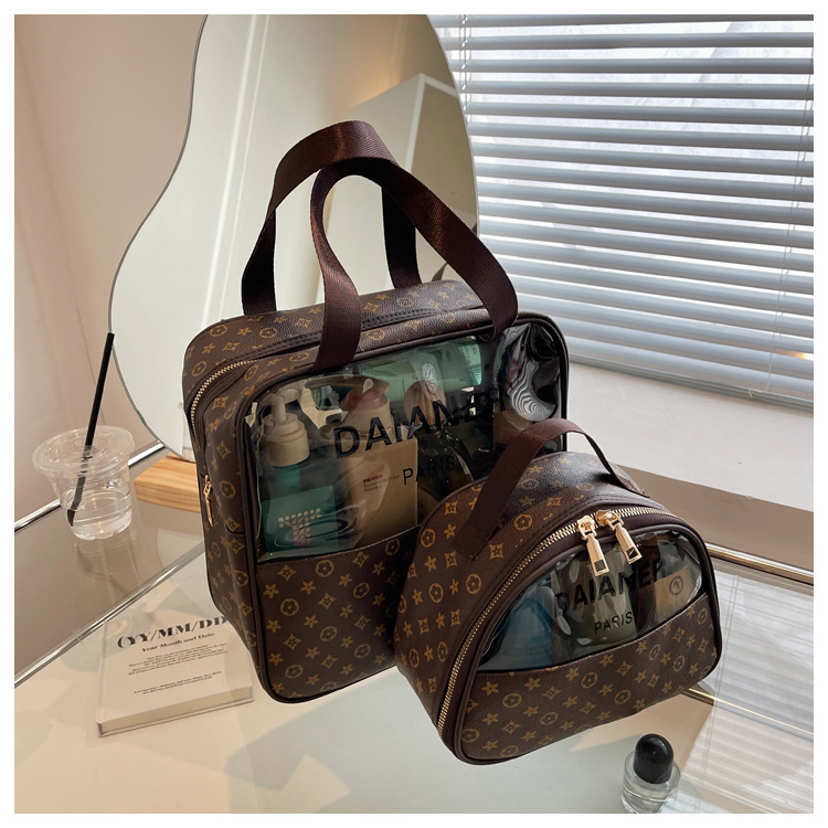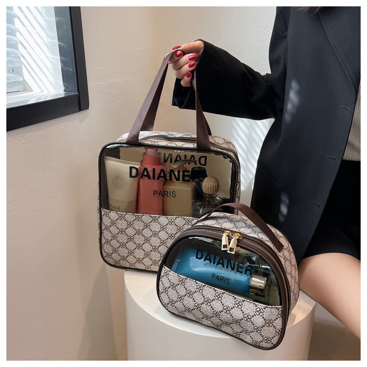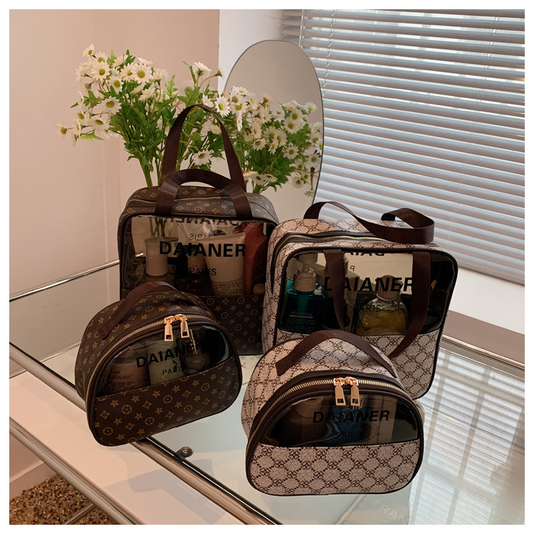 새로운 유럽 및 미국 스타일 레트로 PVC 투명 화장품 가방, 휴대용 여행용, 고급스러운 디자인, 방수, 인쇄 가능 세면도구 가방