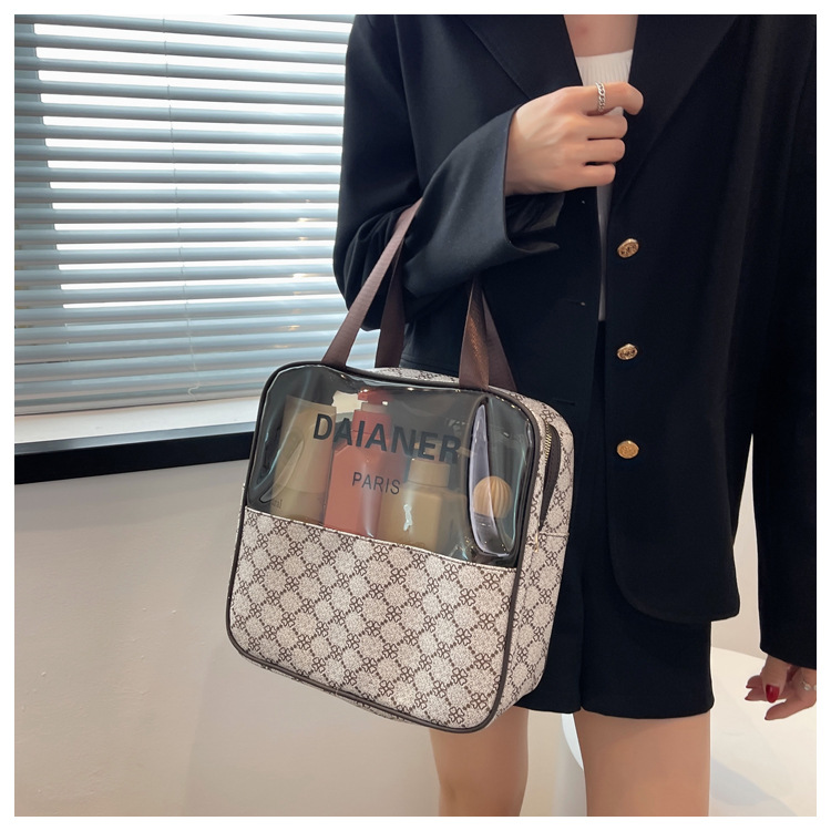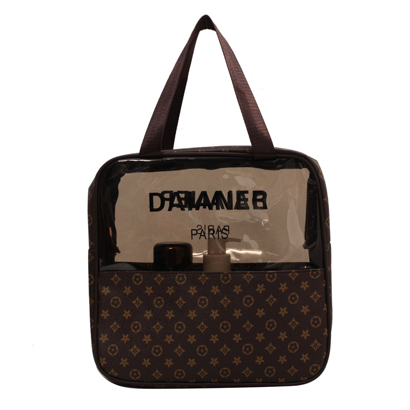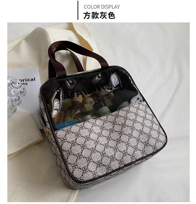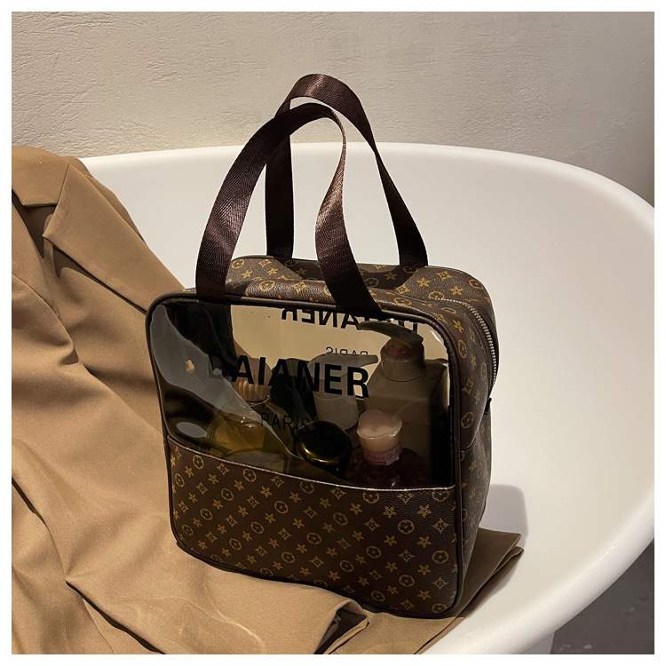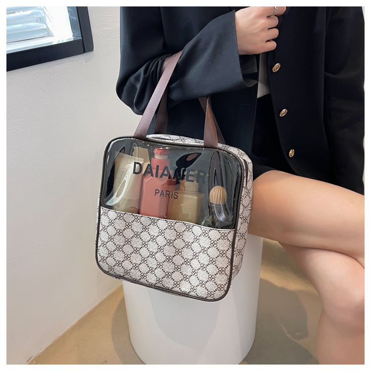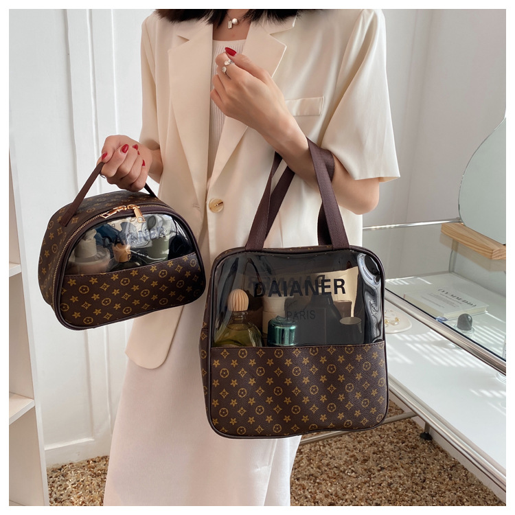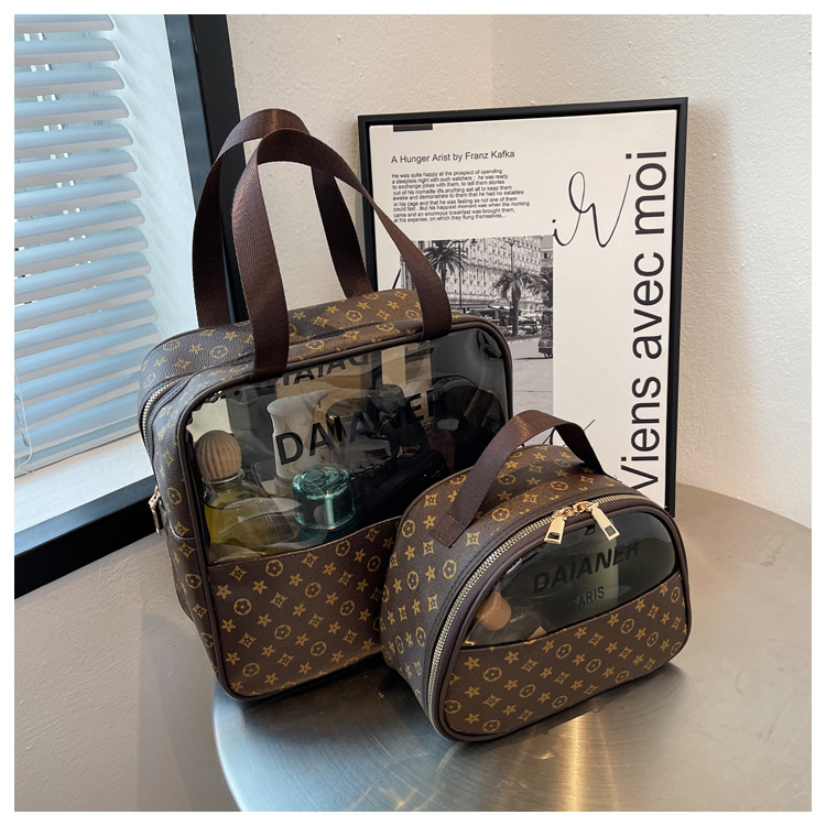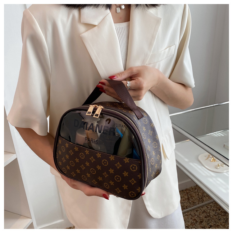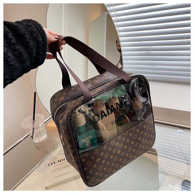 새로운 유럽 및 미국 스타일 레트로 PVC 투명 화장품 가방, 휴대용 여행용, 고급스러운 디자인, 방수, 인쇄 가능 세면도구 가방