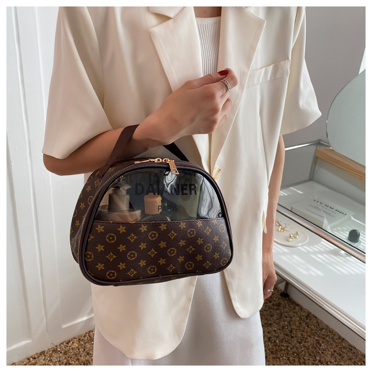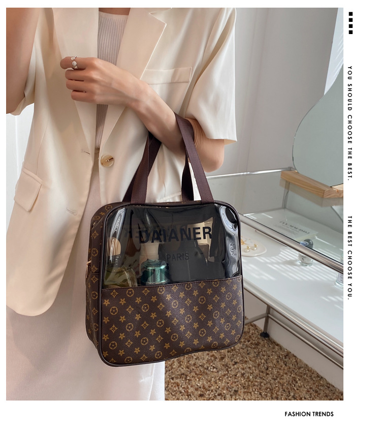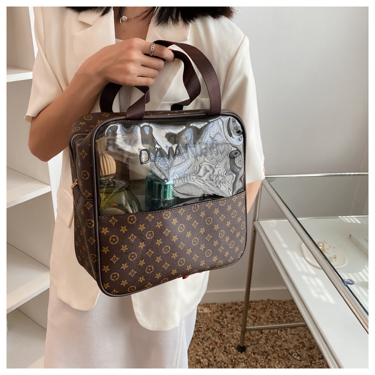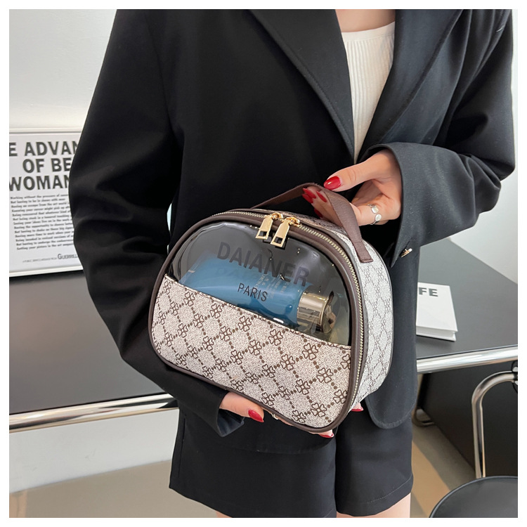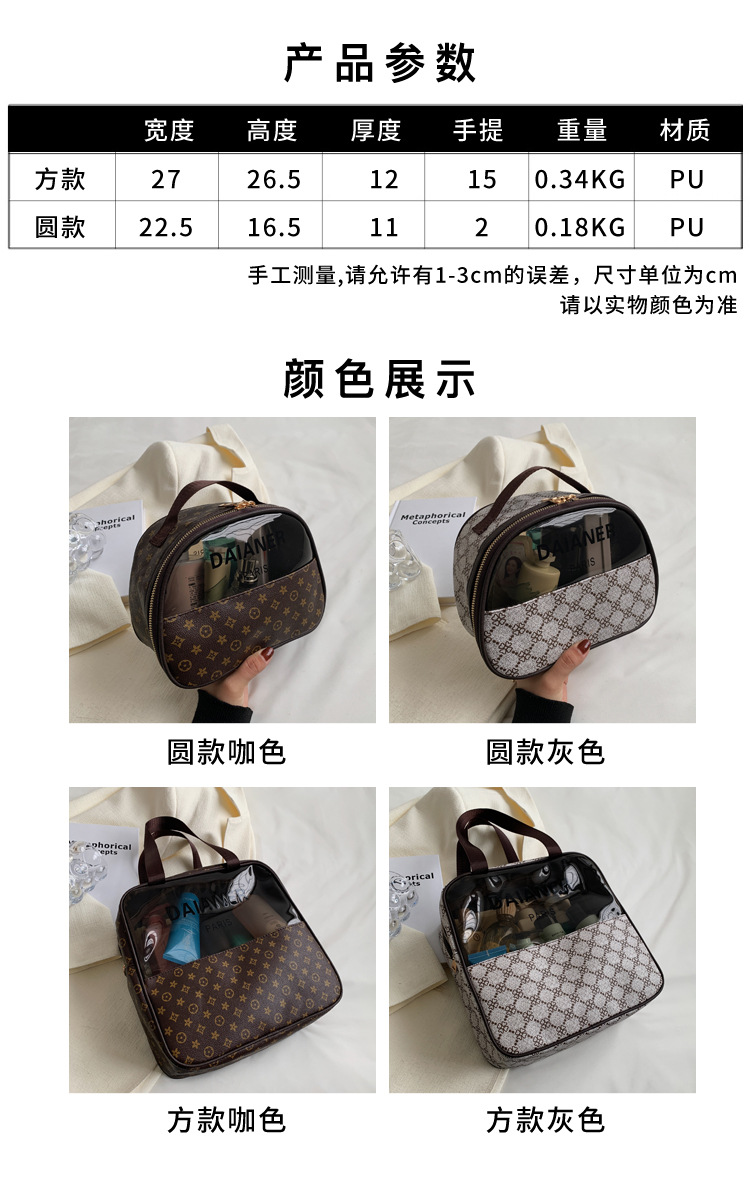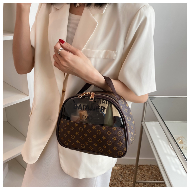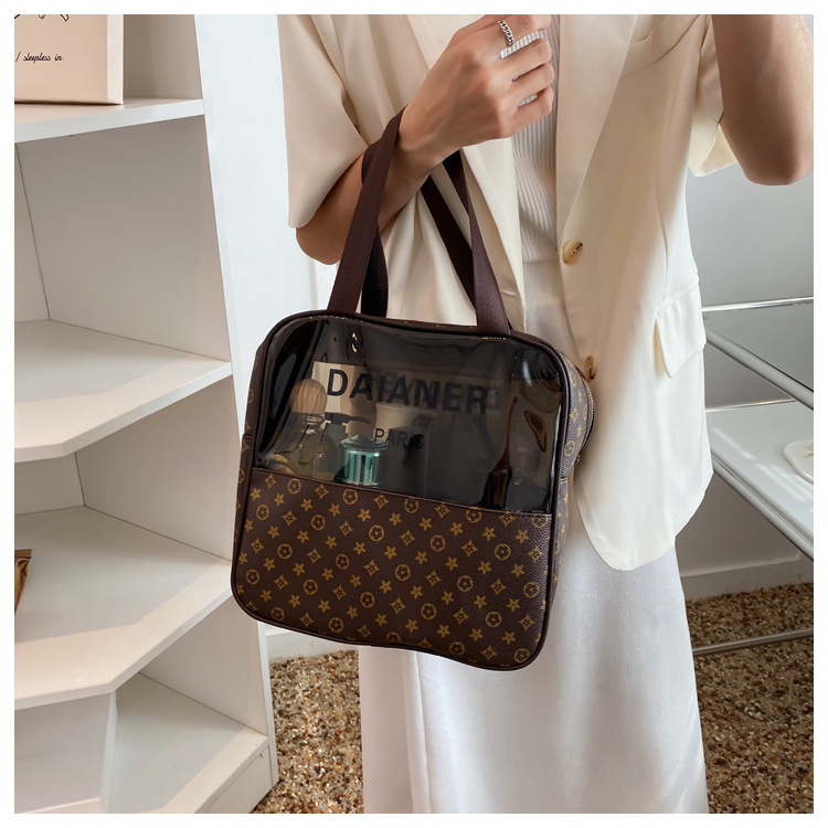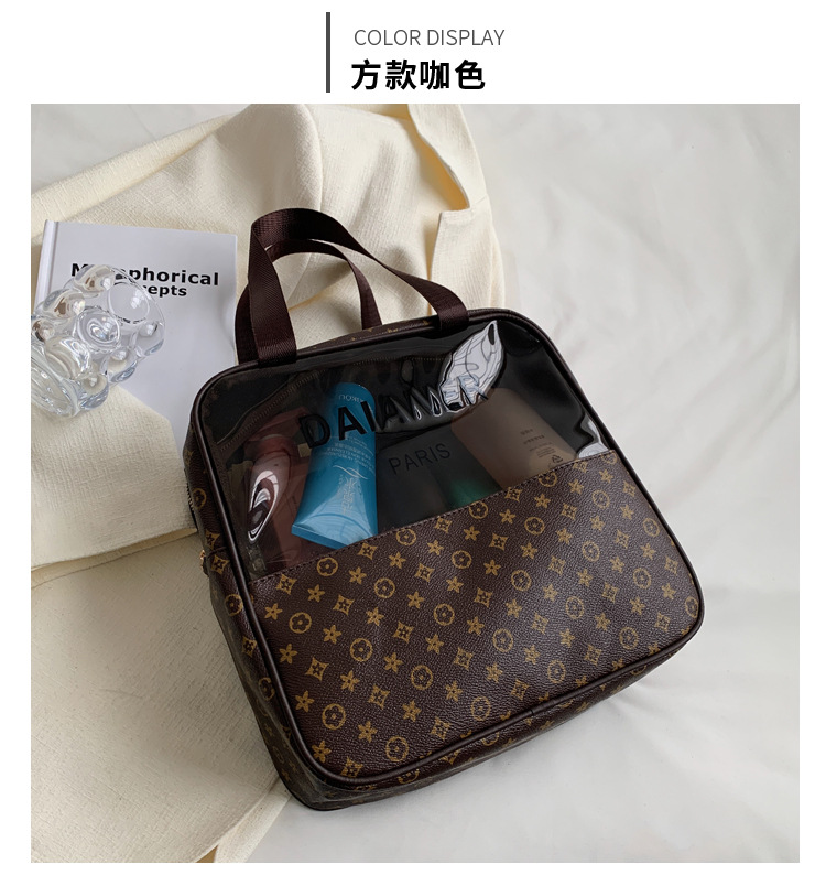 새로운 유럽 및 미국 스타일 레트로 PVC 투명 화장품 가방, 휴대용 여행용, 고급스러운 디자인, 방수, 인쇄 가능 세면도구 가방