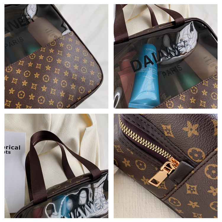 새로운 유럽 및 미국 스타일 레트로 PVC 투명 화장품 가방, 휴대용 여행용, 고급스러운 디자인, 방수, 인쇄 가능 세면도구 가방스토어 가기