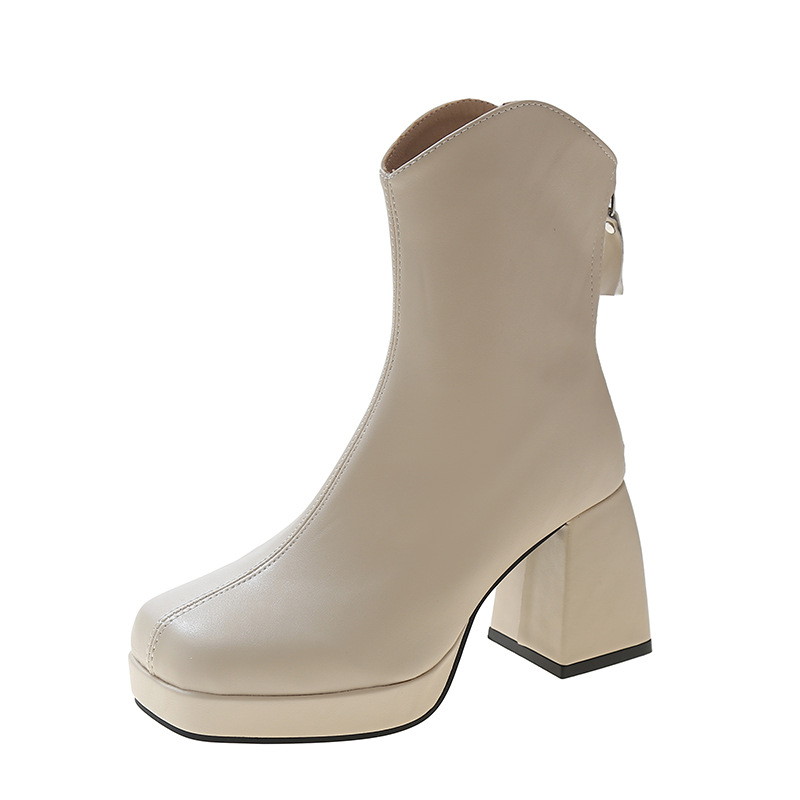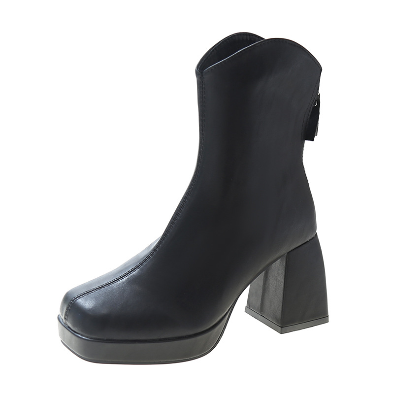 부츠 여성용 2022 가을 겨울 새로운 한국 스타일 두꺼운 밑창 마틴 부츠 여성용 하이힐 스퀘어 헤드 리어 지퍼 두꺼운 굽 짧은 부츠 여성용
