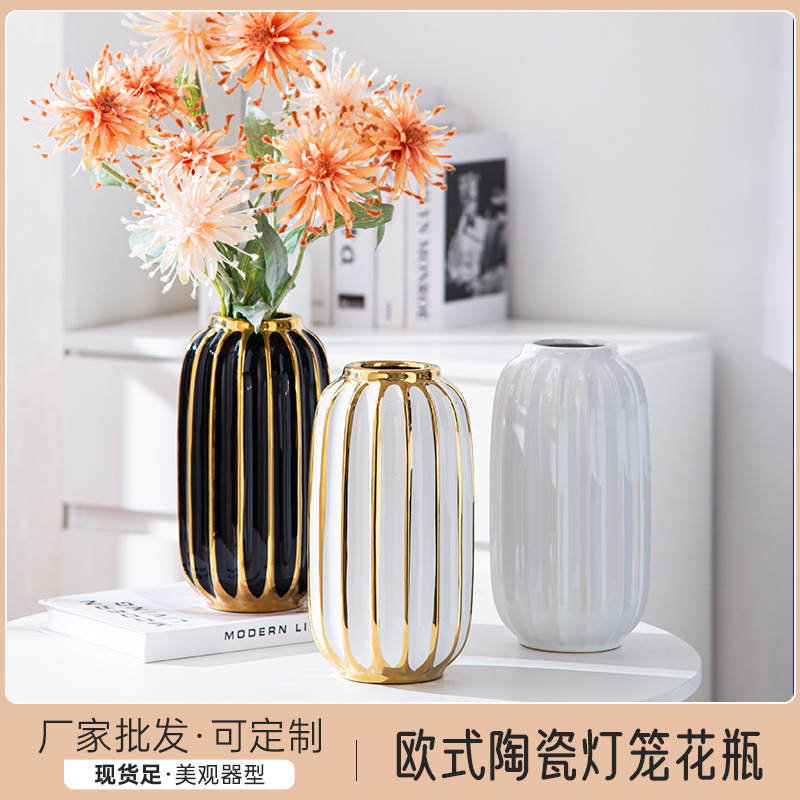스타일의 간단한 가정 장식 도금 랜턴 세라믹 꽃병 거실 식탁 장식품 세라믹 꽃꽂이 병