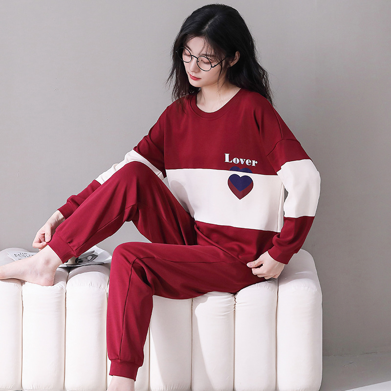 2023 남자와 여자를위한 새로운 커플 잠옷 봄과 가을 면 긴 소매 크루넥 풀오버 만화 가정 옷 세트스토어 가기