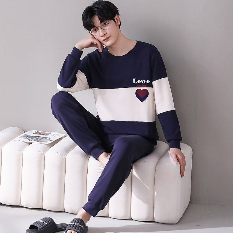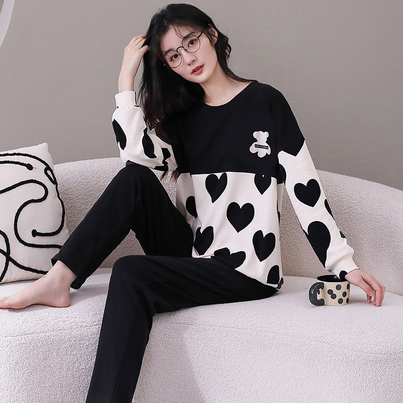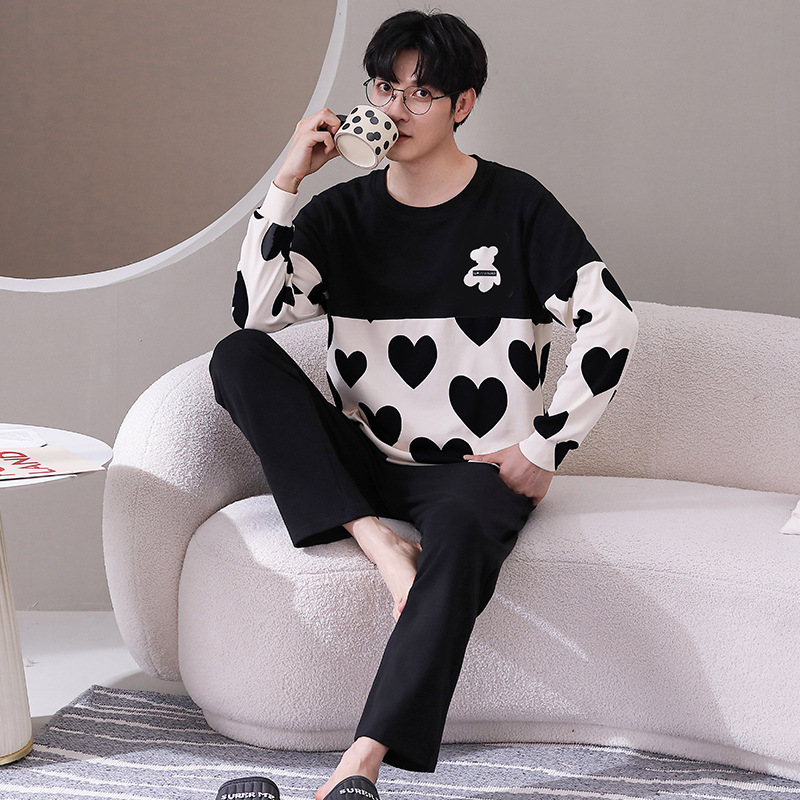 2023 남자와 여자를위한 새로운 커플 잠옷 봄과 가을 면 긴 소매 크루넥 풀오버 만화 가정 옷 세트