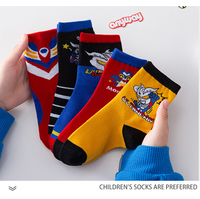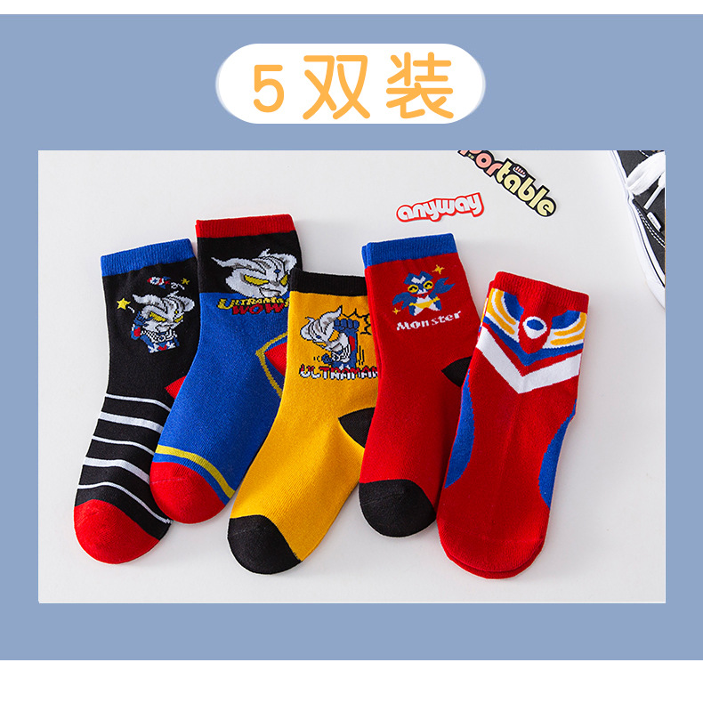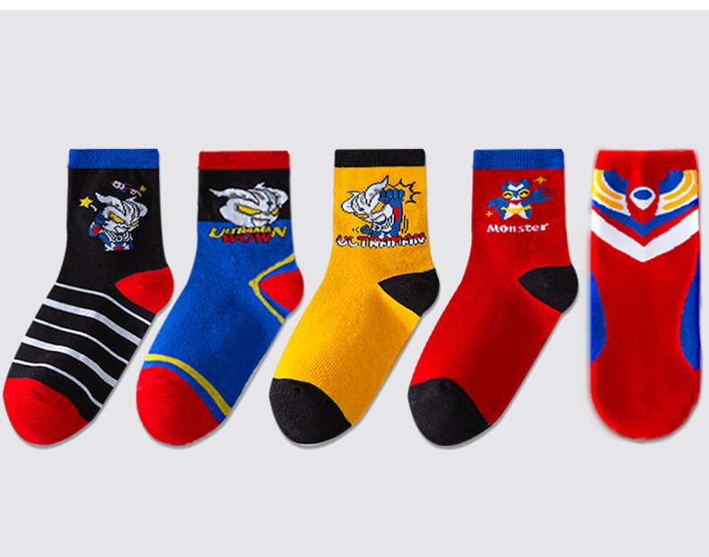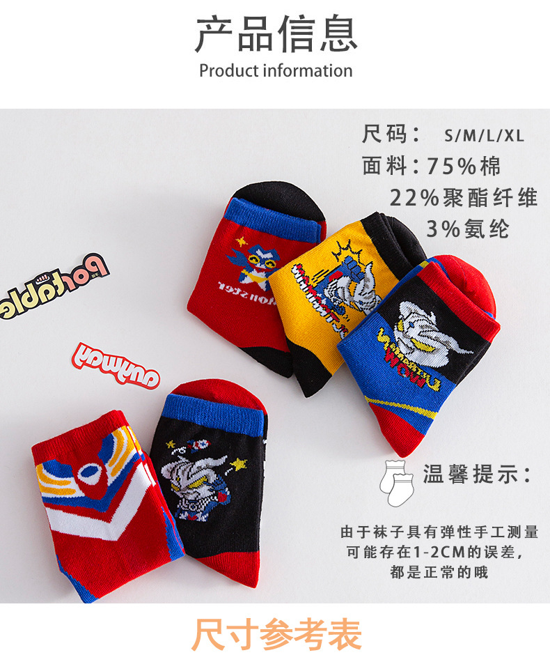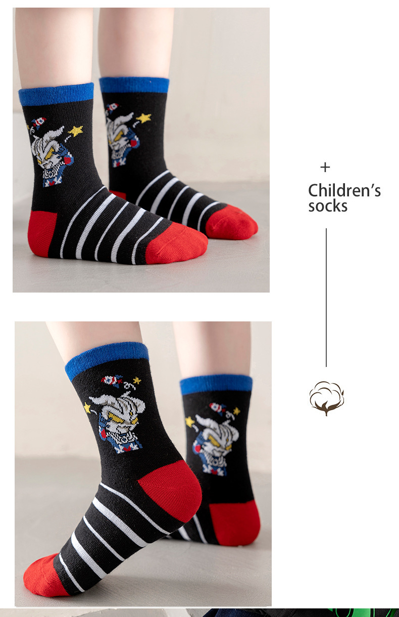가을 겨울 어린이 양말 만화 울트라맨 중목 양말 줄무늬 코마사면 어린이 양말 중대형 어린이 유아용