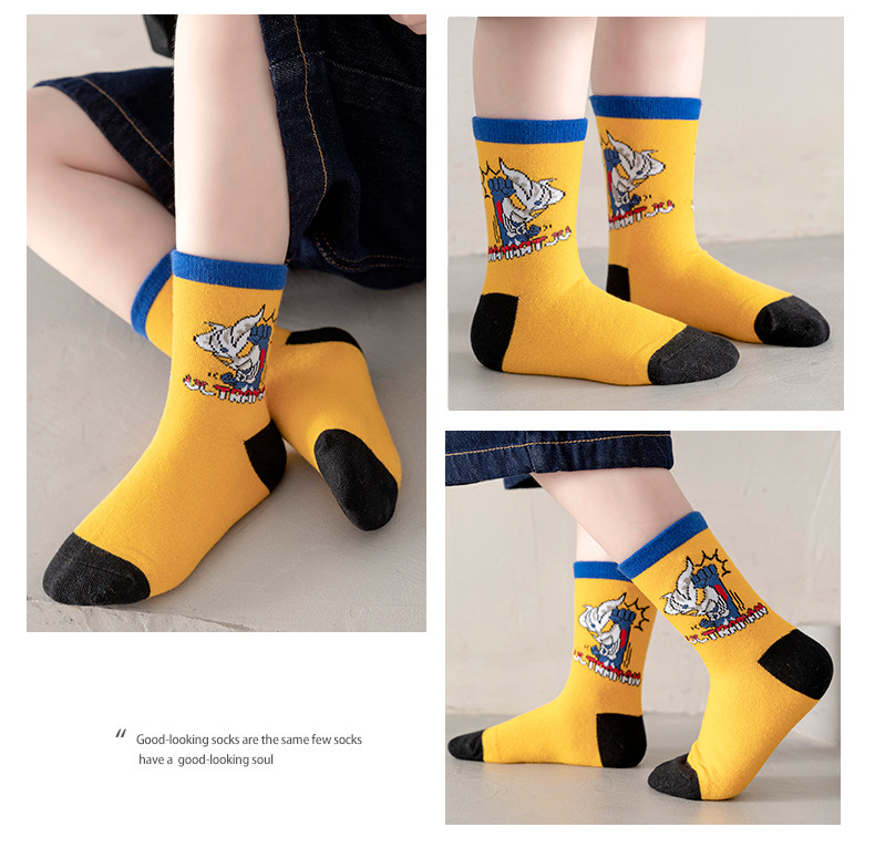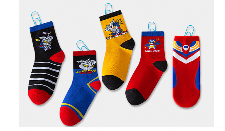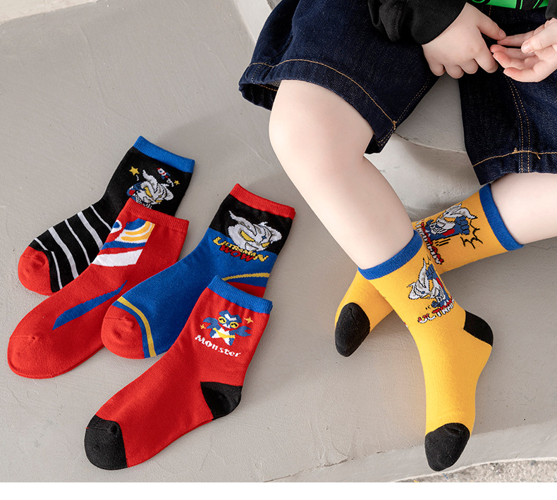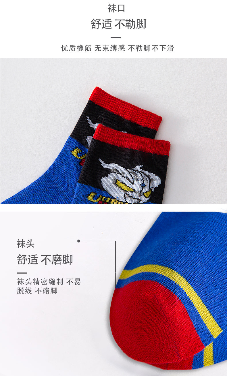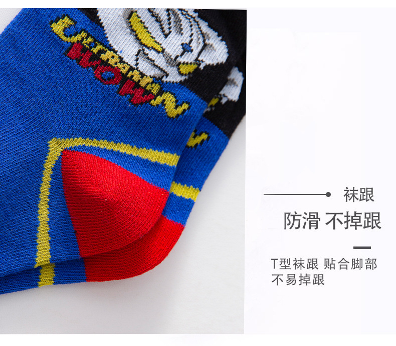 가을 겨울 어린이 양말 만화 울트라맨 중목 양말 줄무늬 코마사면 어린이 양말 중대형 어린이 유아용