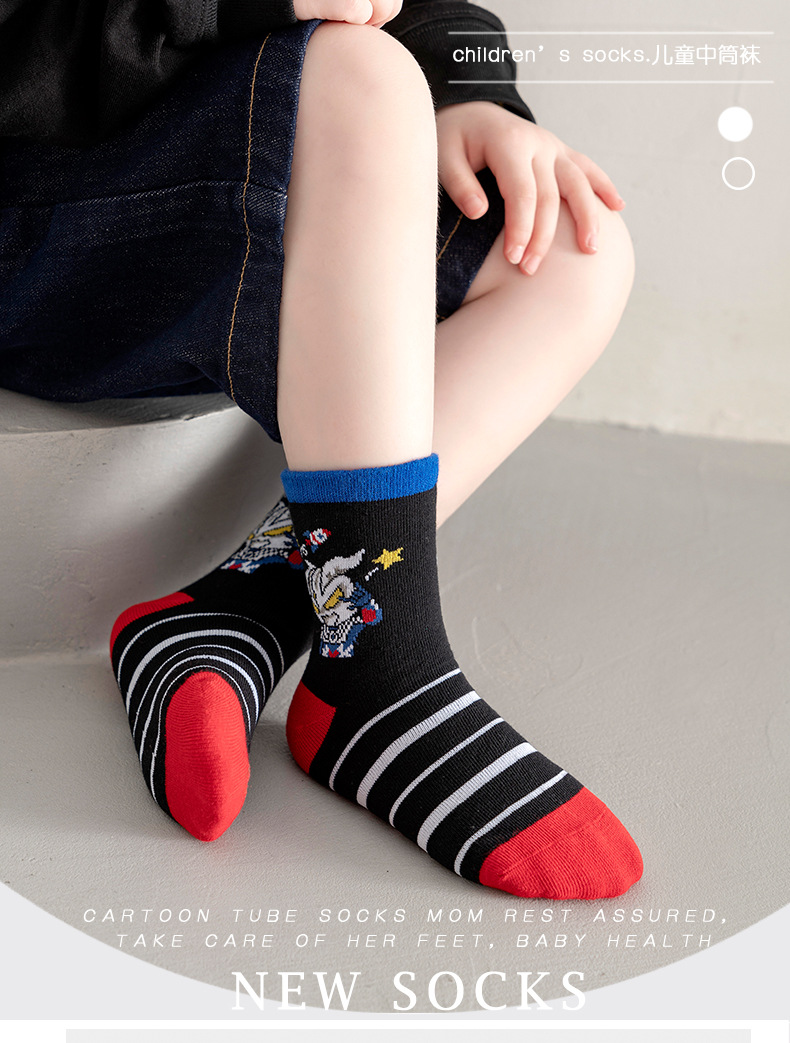 가을 겨울 어린이 양말 만화 울트라맨 중목 양말 줄무늬 코마사면 어린이 양말 중대형 어린이 유아용스토어 가기