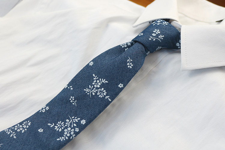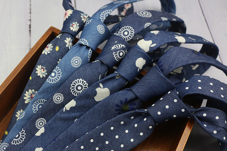 넥타이 남자의 좁은 캐주얼 모든 경기 여자의 대학 스타일 7cm 학생 데님 블루 플라워 일본식 웨이브 도트 개인화 된 면과 린넨스토어 가기