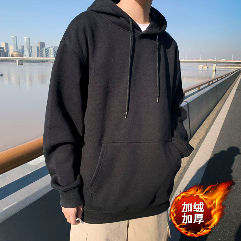 후드 스웻셔츠 남성용 트렌디한 홍콩 스타일 루즈한 스포츠 캐주얼 코트 가을과 겨울 벨벳 학생 모든 경기 풀오버 탑스토어 가기