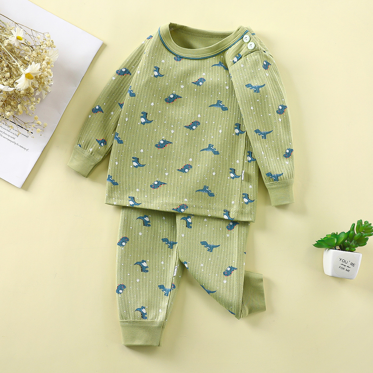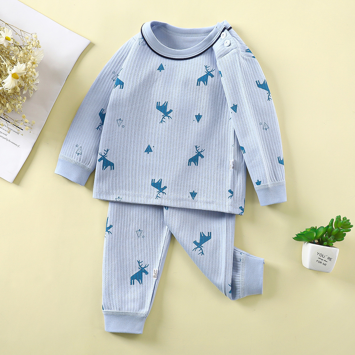 국경 2024 새로운 어린이 면화 샌딩 뼈없는 가을 옷과 바지 세트 남녀 용 코튼 홈 옷스토어 가기
