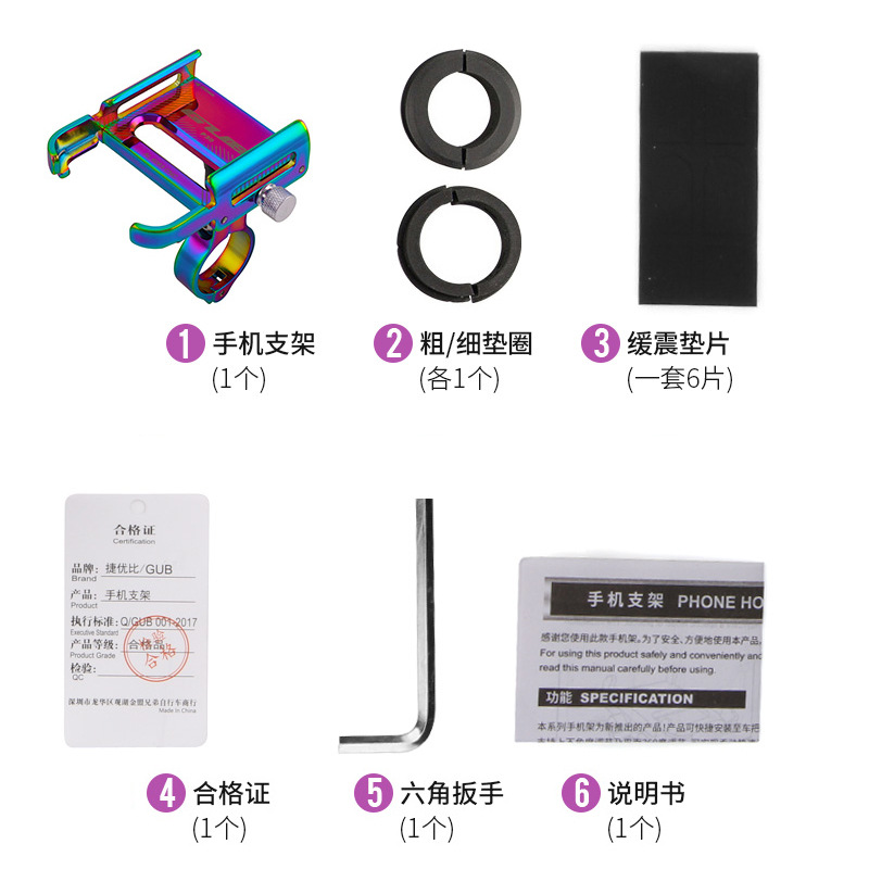特点:铝合金架体,七彩电镀彰显个性,高兼容性不挑手机型号,自行车、电动车等都可使用!