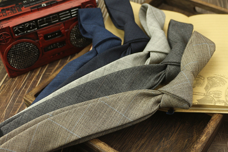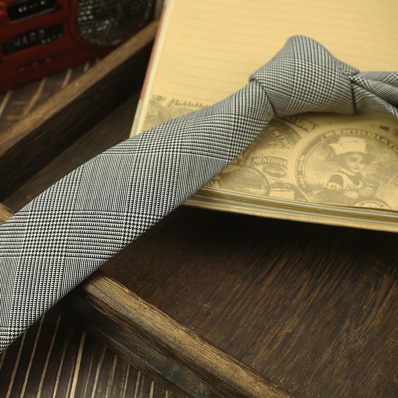 넥타이 남자의 좁은 캐주얼 6cm 복고풍 영국 스타일 울 회색 격자 무늬 비즈니스 원피스 블루 스트립 모든 일치 블루스토어 가기