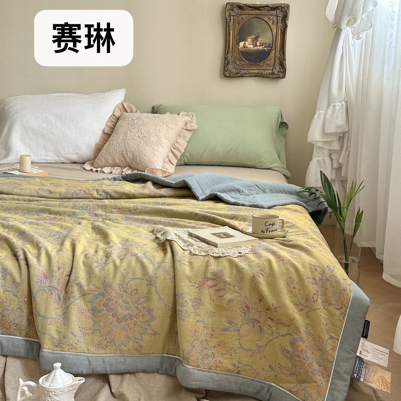 순면 원사 염색 2 층 원사 자카드 여름 이불 아메리칸 레트로 플로럴 에어컨 이불 도매스토어 가기