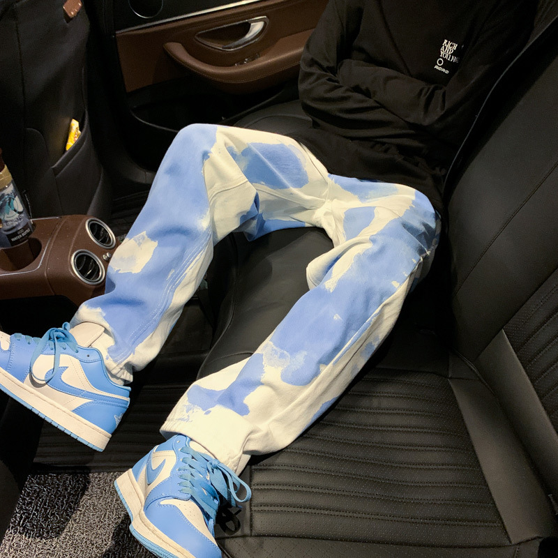 타이다이 청바지 남성용 여름 느슨한 얇은 스트레이트 와이드 팬츠 인스 타 그램 스타일 트렌디 아빠 바지 트렌디 하이 스트리트 팬츠스토어 가기
