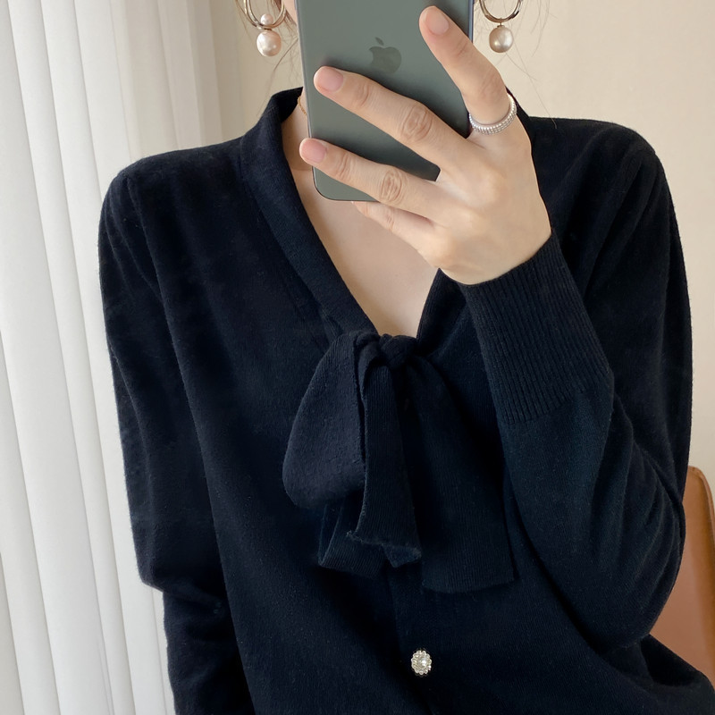 프랑스 기질 통근 짧은 스웨터 활 카디건 여자 가을과 겨울 새로운 올 매치 스웨터 코트 탑