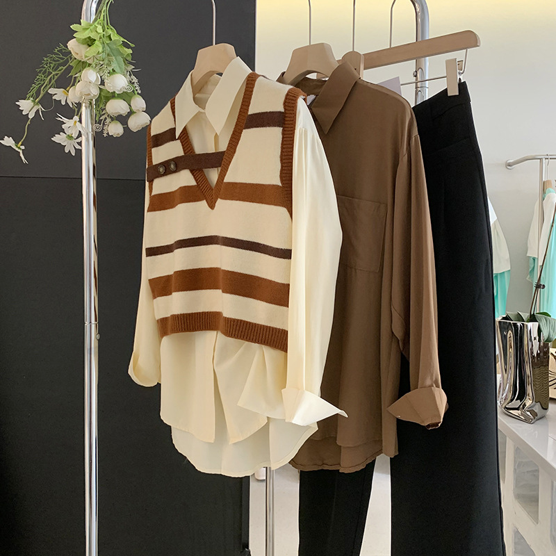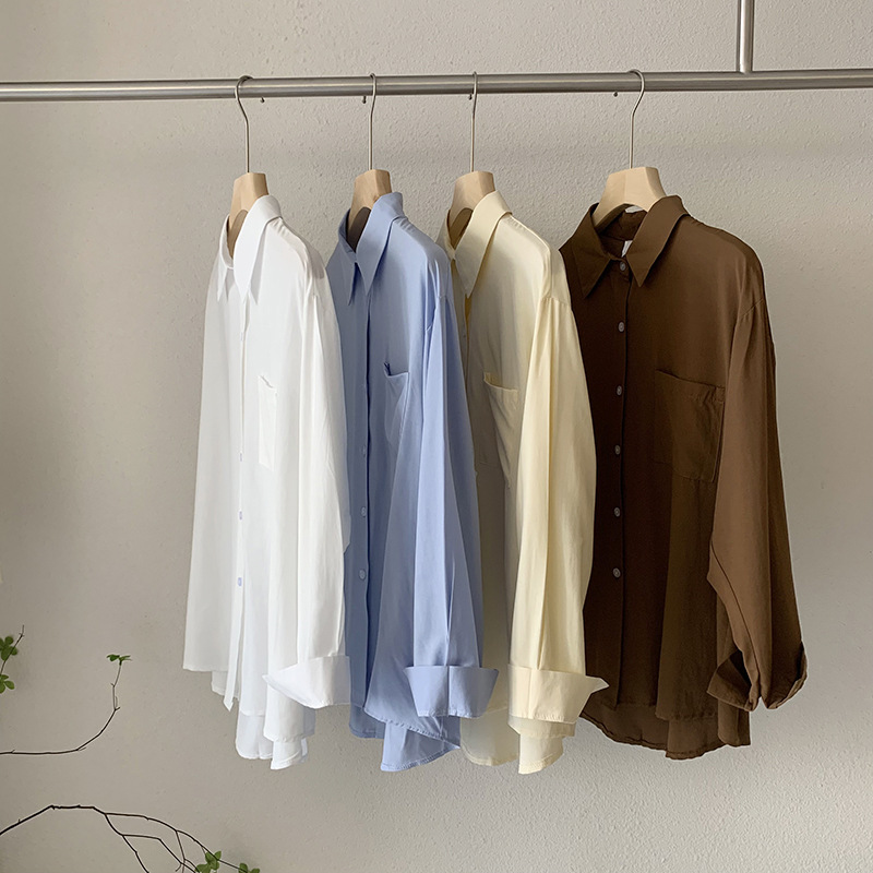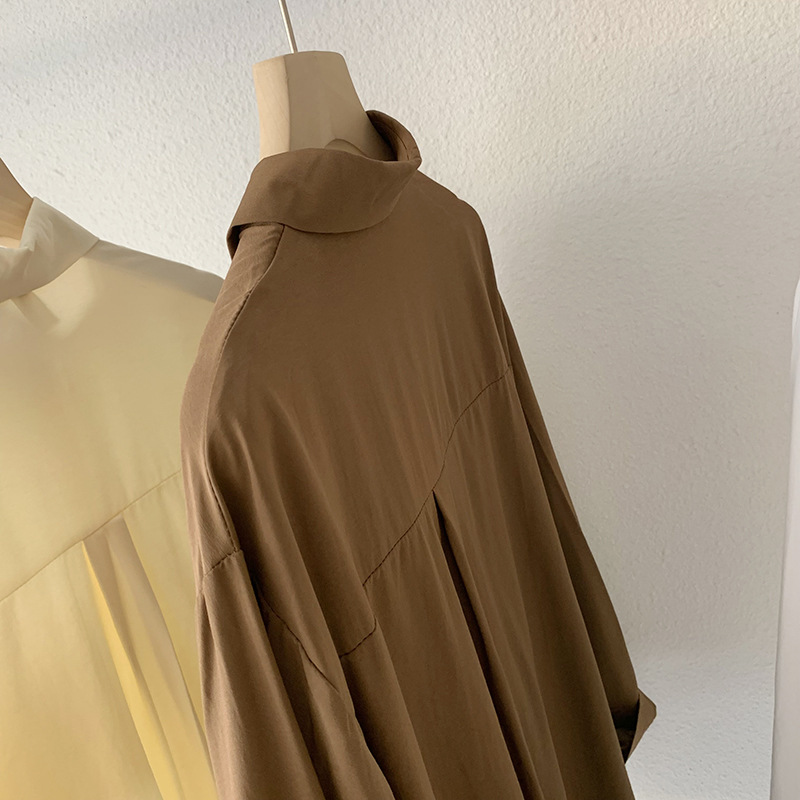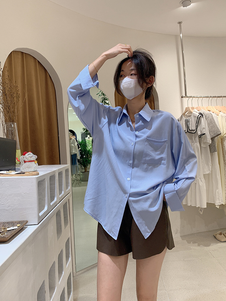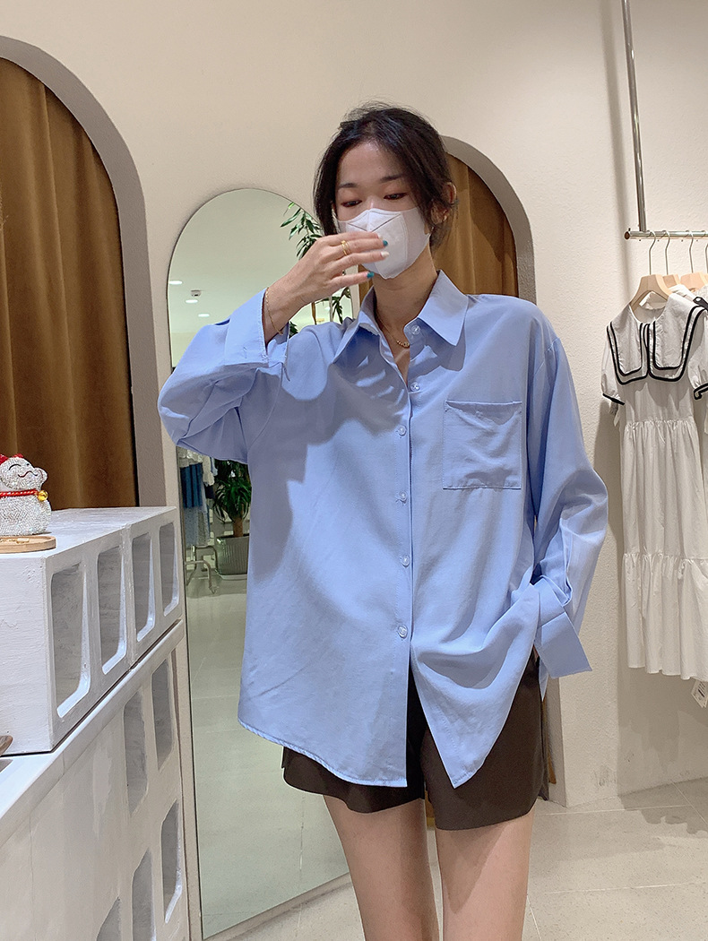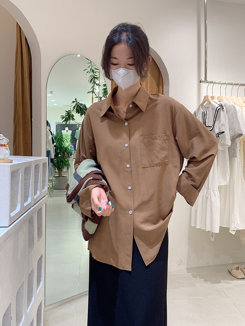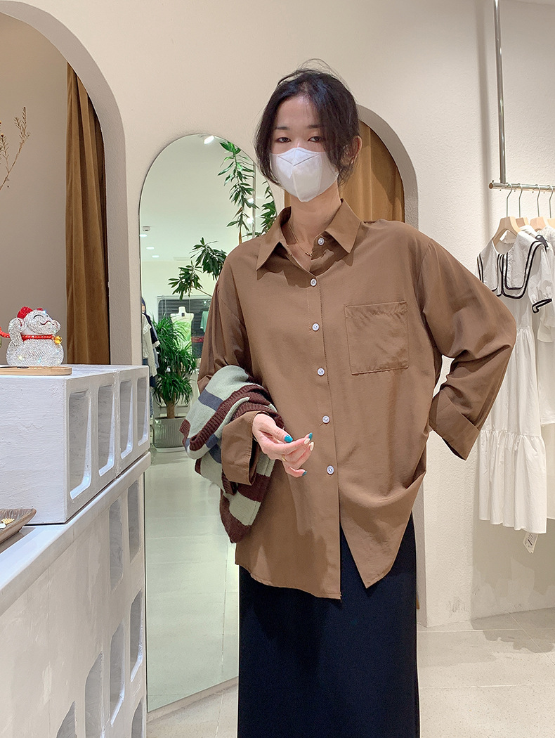 2025 봄 신상품 여성용 대형 포켓 싱글 브레스트 솔리드 컬러 긴팔 중간 길이 셔츠 탑 도매 8465스토어 가기