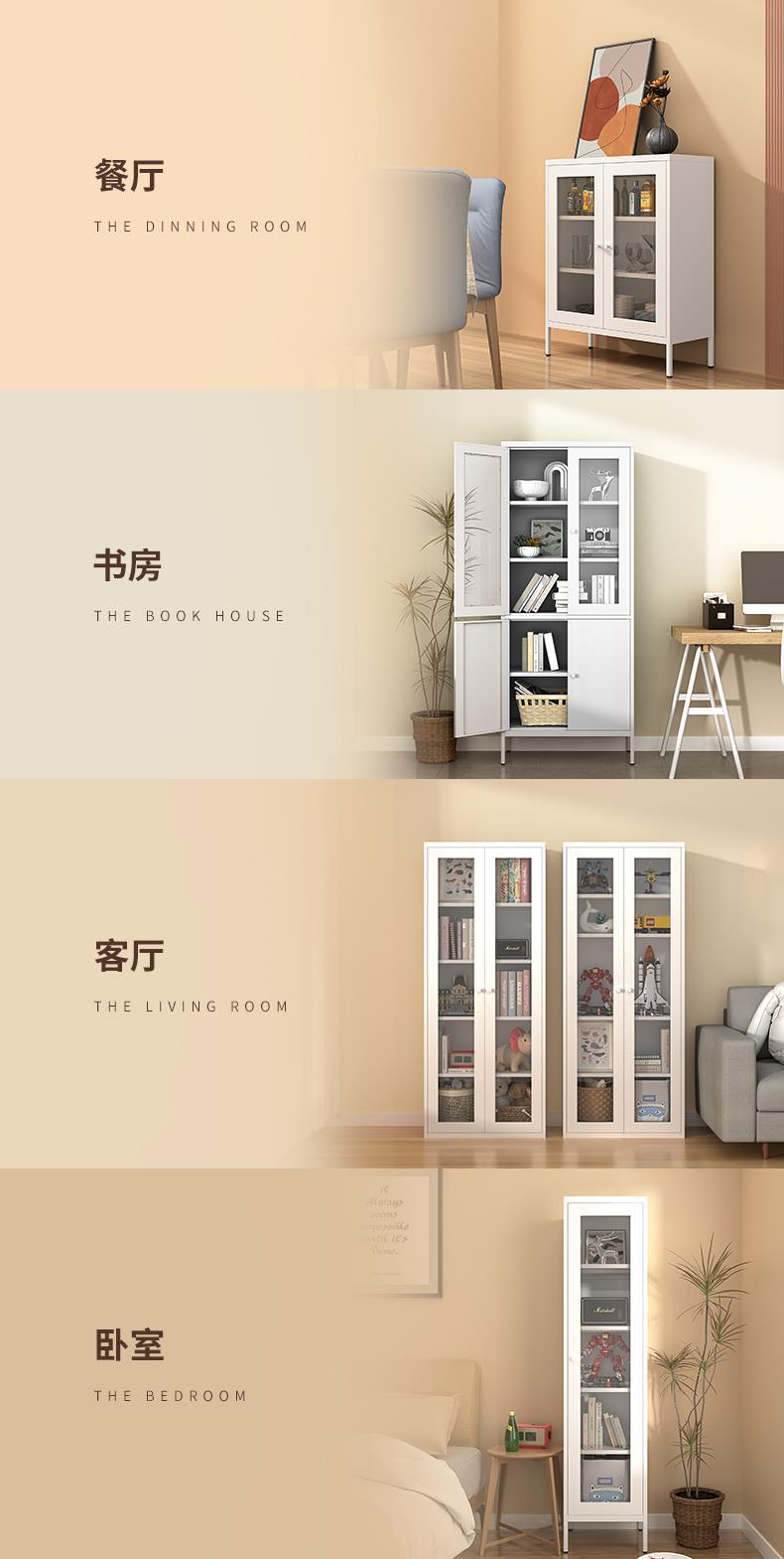 • 바닥 유리 더블 도어 책장-구름 흰색
