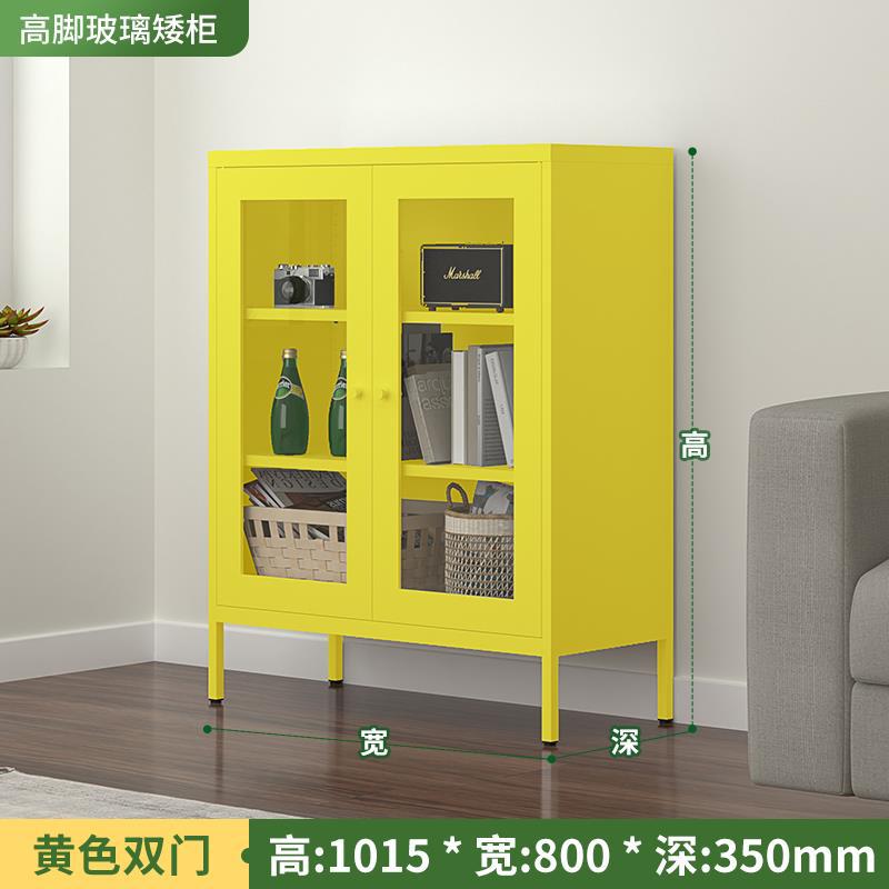 • 바닥 유리 더블 도어 책장-레몬 옐로우