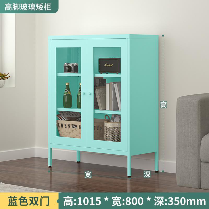 • 바닥 유리 더블 도어 책장-티파니 블루