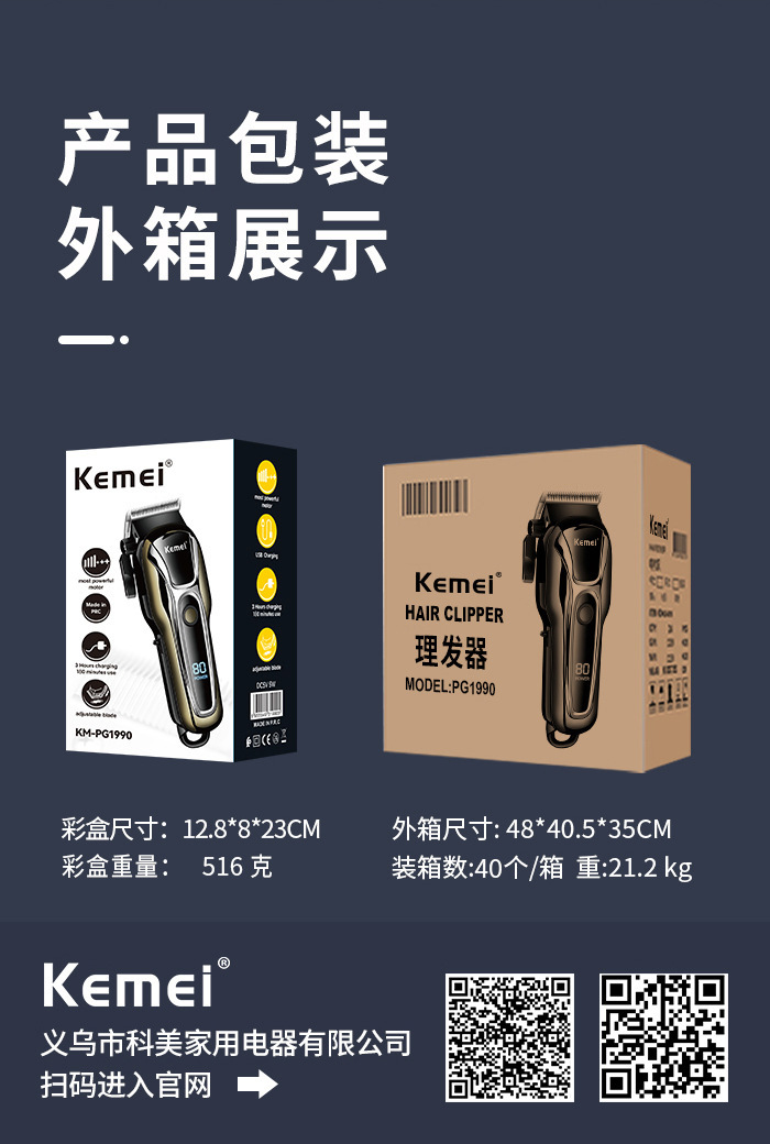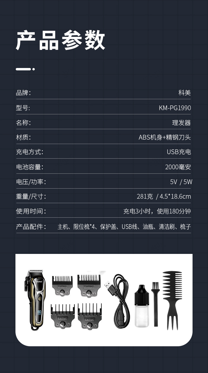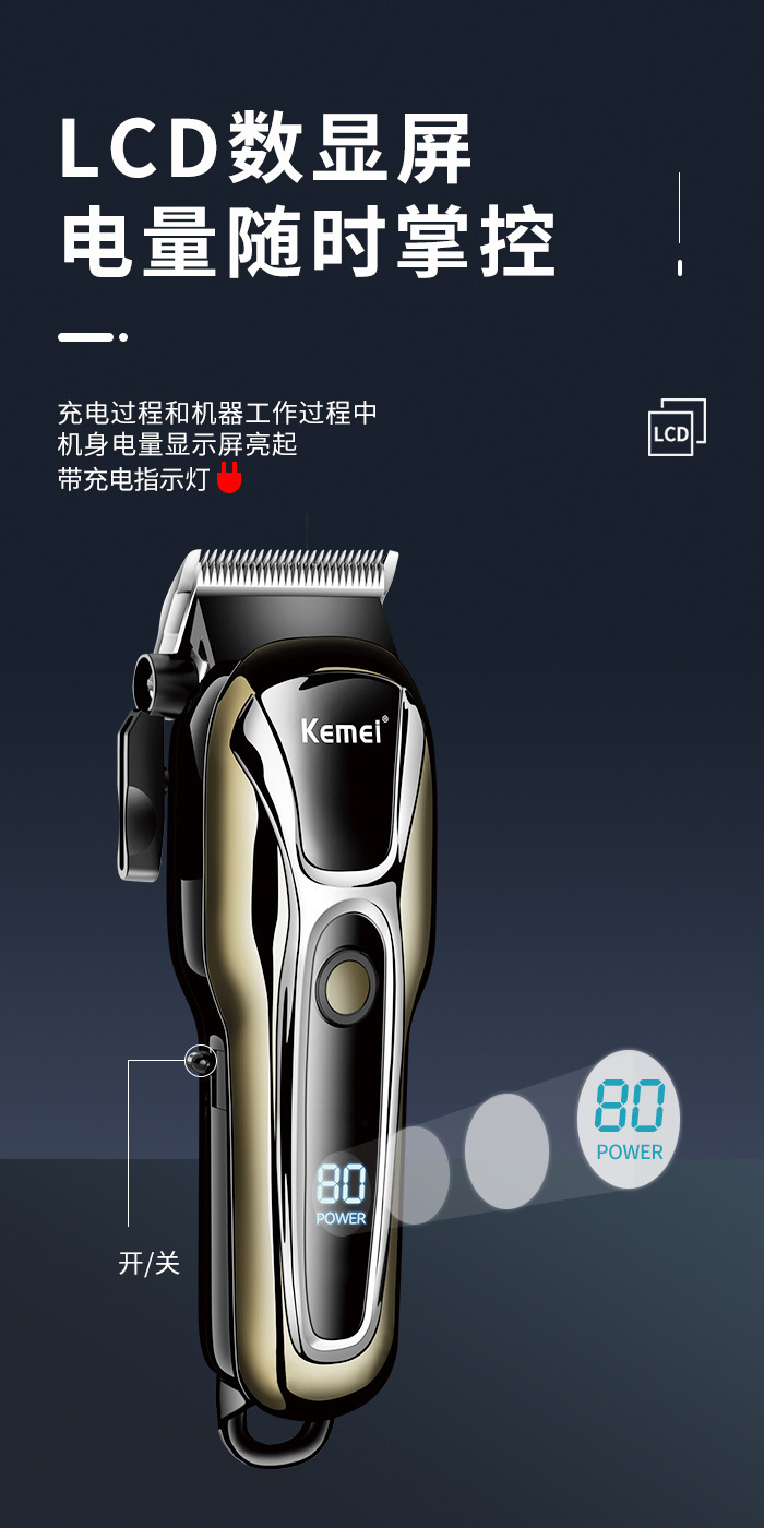 새로운 Kemei KM-1990PG 이발기 전기 면도기 고출력 LCD 디지털 디스플레이 전기 이발기 헤어 살롱 전용스토어 가기