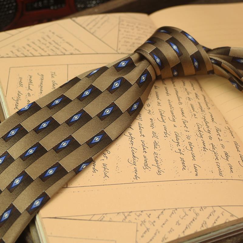 넥타이 남성 캐주얼 멀버리 실크 프린트 여성 커피 패턴 10CM 복고풍 홍콩 스타일 문학 영국 정장 블루스토어 가기