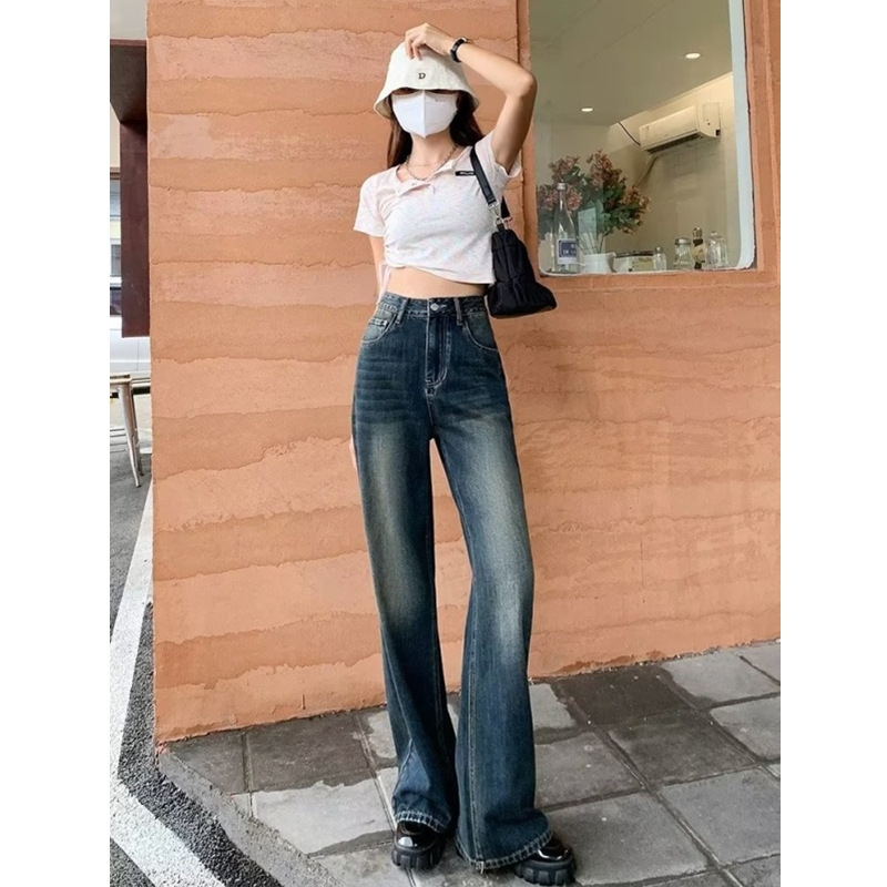 높은 허리 마이크로 플레어 청바지 여성의 가을 2022 새로운 슬리밍 스트레치 말굽 바지 걸레 작은 하이 스트리트 패션스토어 가기