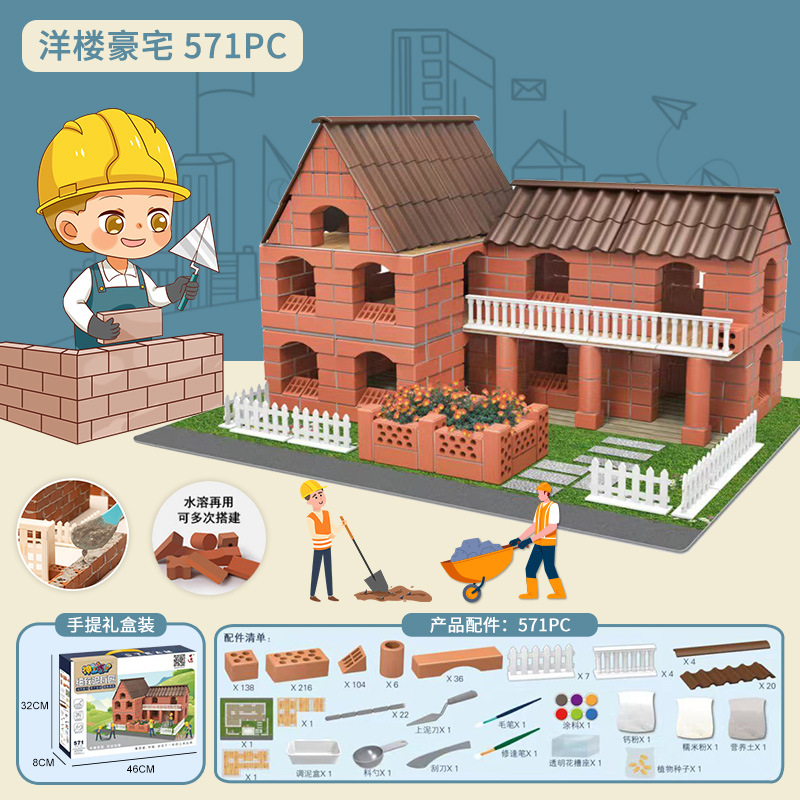 작은 석공 아이들 집 DIY 수제 건축가 소형 미니 시멘트 벽돌 블록 벽 장난감 만들기스토어 가기