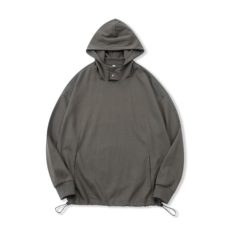 덴쥐 남성용 가을 후드티 320g 트윌 양면 면 금속 버튼 방풍 후드 루즈핏 트렌디 만능 아이템