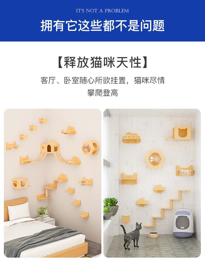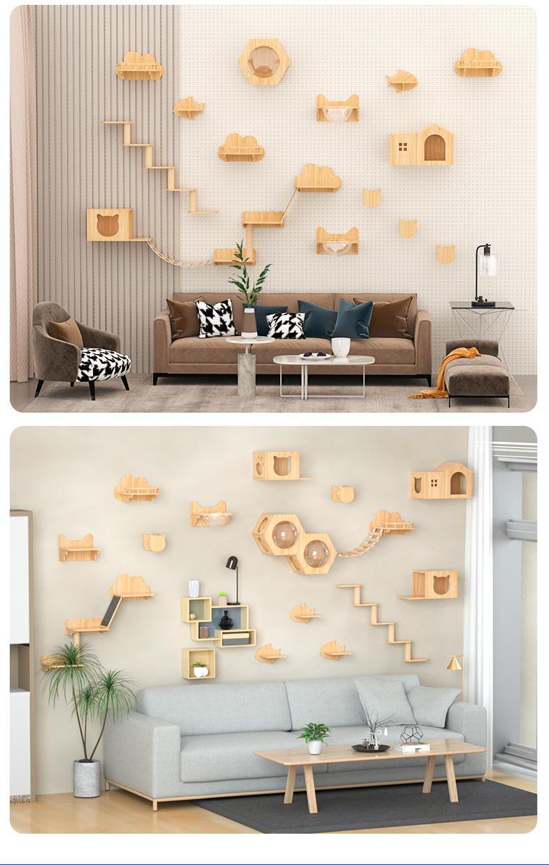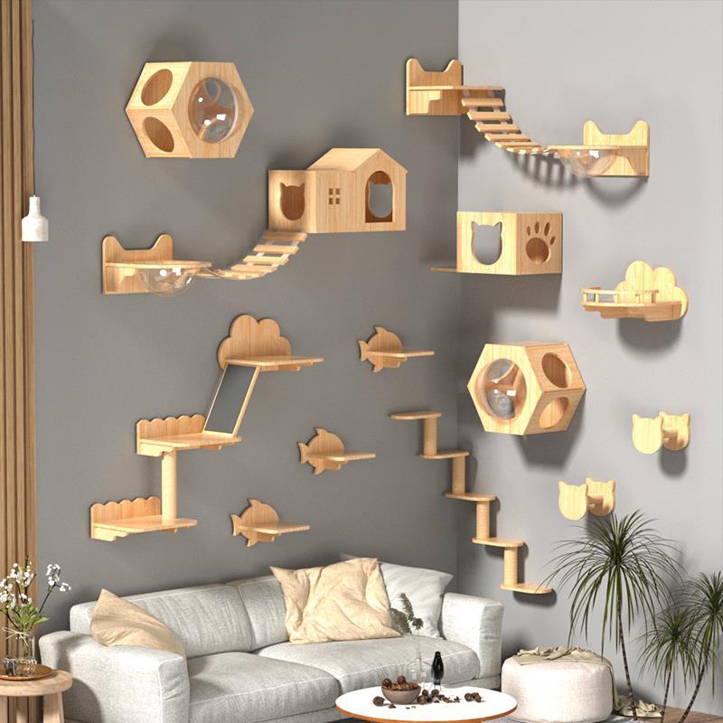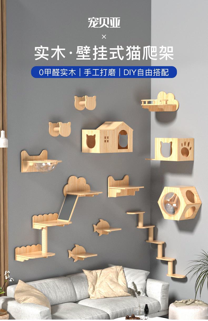 애완 동물 Beiya 고양이 등산 랙 교수형 벽 벽 벽 고양이 벽 벽 고양이 둥지 고양이 나무 벽걸이 형 단단한 나무 고양이 스크래치 벽 고양이 점프 테이블스토어 가기