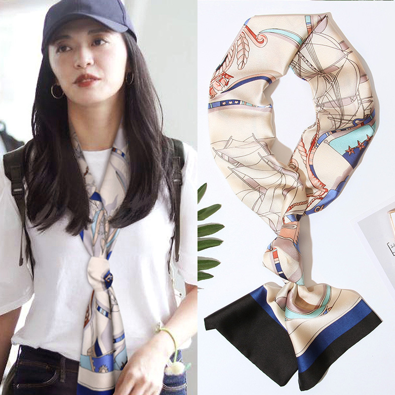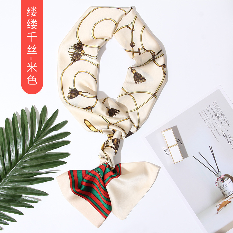 신상 실크 스카프 여성용 긴 스트립 장식 스카프 2025 신상 가방 장식 봄 가을 셔츠와 함께 착용 가능한 손목띠 머리띠 도매스토어 가기