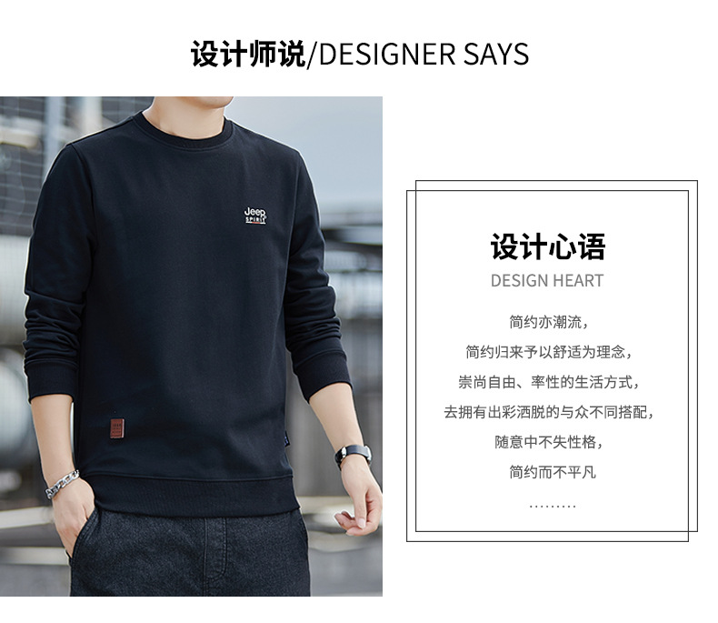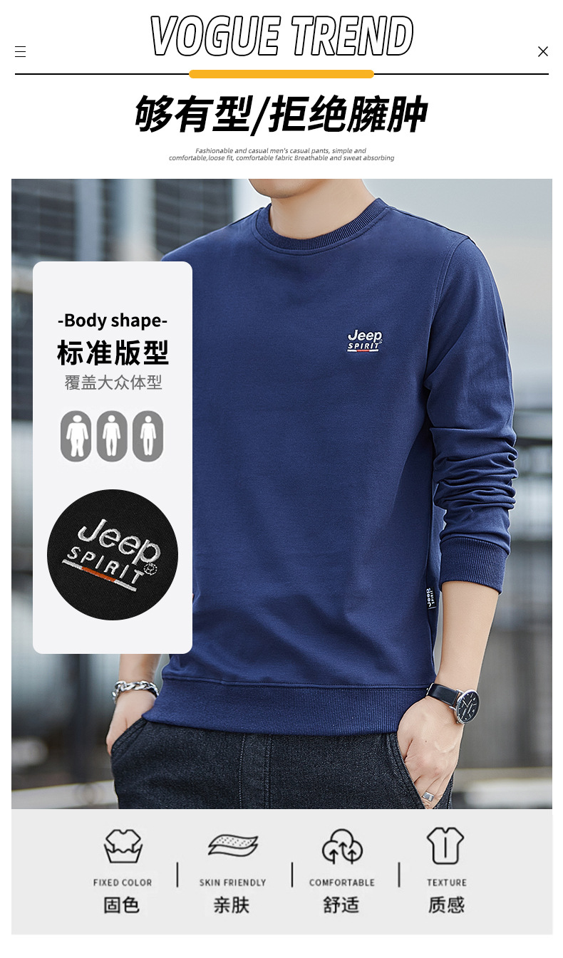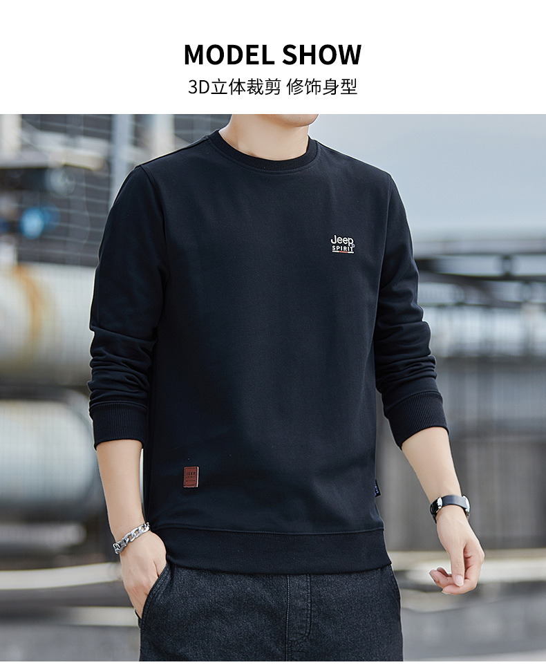 슈퍼 추천 JEEP SPIRIT 봄 가을 라운드넥 긴팔 티셔츠 남성 스포츠 루즈핏 스웨트셔츠 남성 트렌디 브랜드 7151 신상품스토어 가기