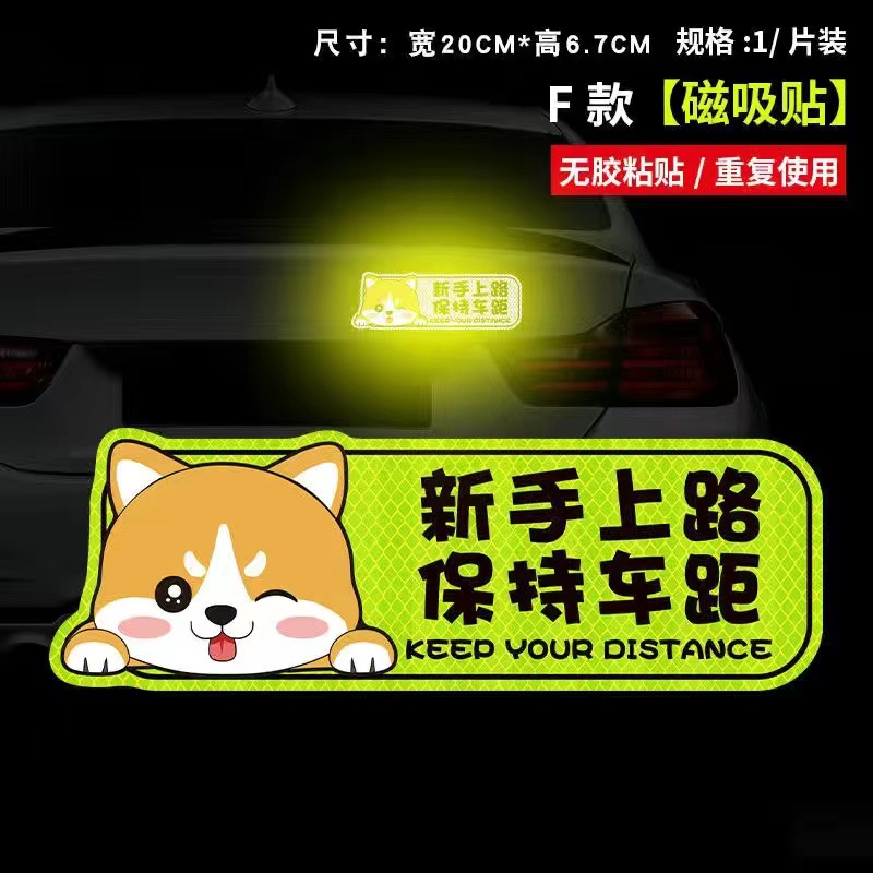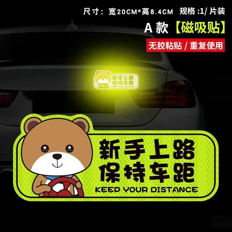 도로에 초보자 인턴쉽 자동차 스티커 창조적 인 여성 드라이버 반사 자기 성격 만화 텍스트 자동차 장식 스티커스토어 가기