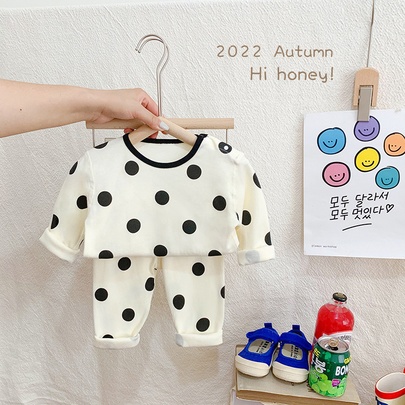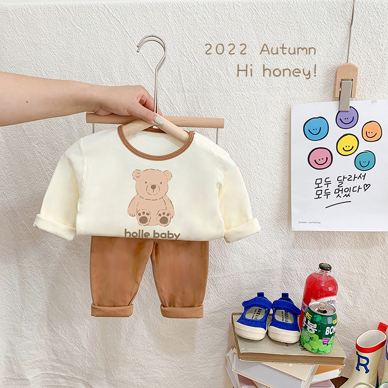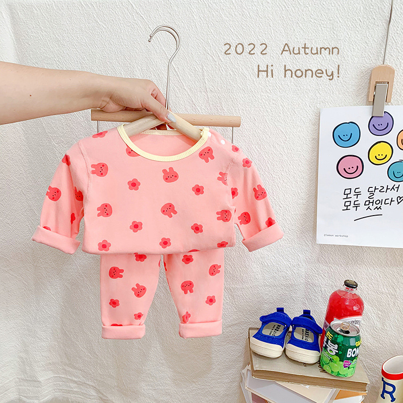 22 재고 한국어 in 어린이 뼈없는 가을 옷 긴 바지 가정 옷 세트 가을과 겨울 잠옷 속옷 투피스 세트스토어 가기