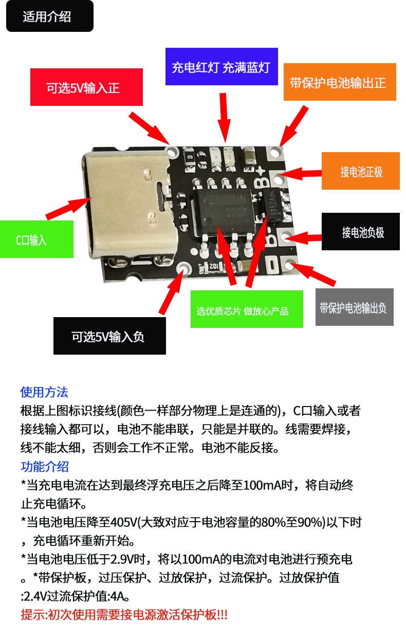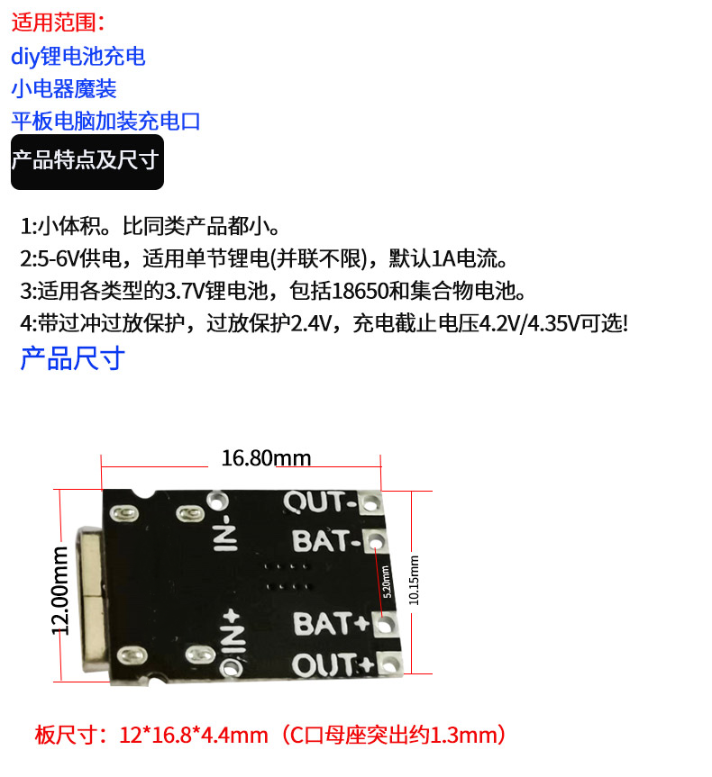 초소형 삼항 리튬 배터리 충전 보드 1A 3.7V4.2V 충전기 모듈 Type-C 인터페이스 보호 보드스토어 가기