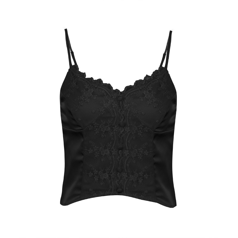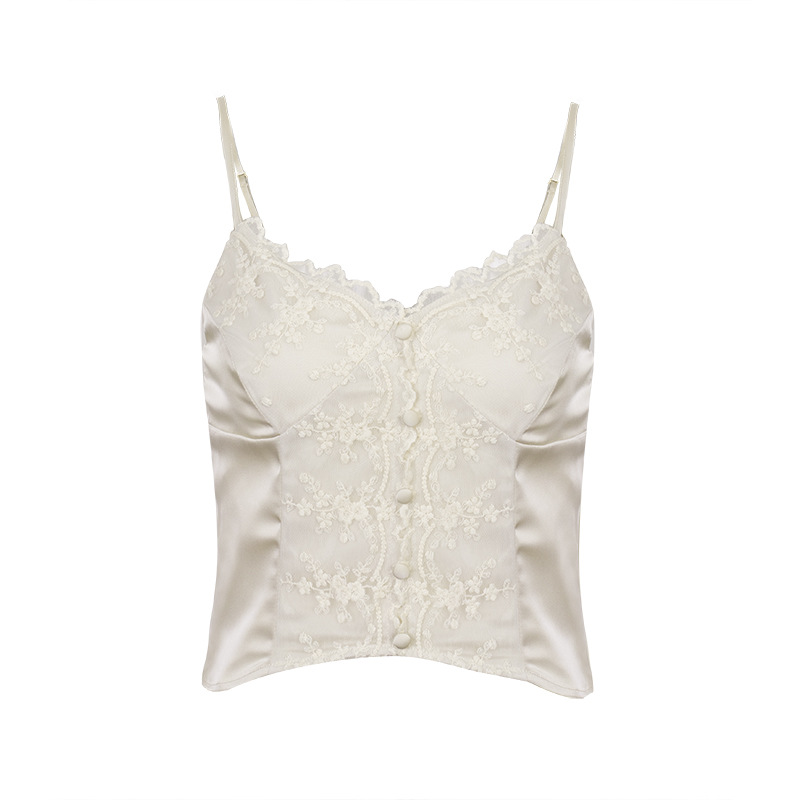 부드러운 공식 _ 레트로 레이스 스트랩 여성 순수한 바람 V 넥 높은 새틴 내부 조끼스토어 가기