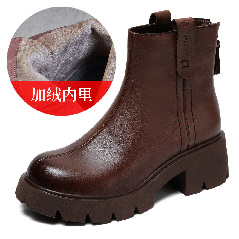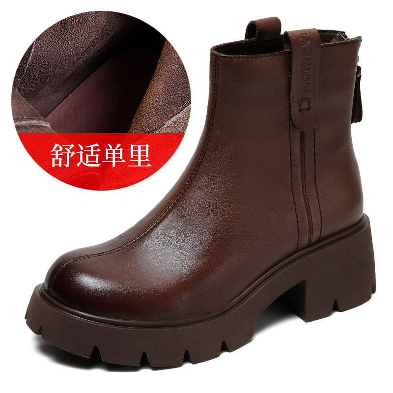 두꺼운 굽 탑 레이어 소가죽 짧은 부츠 여성용 영국 스타일 2023 가을과 겨울 빈티지 라운드 토 마틴 부츠 두꺼운 단독 기사 얇은 부츠